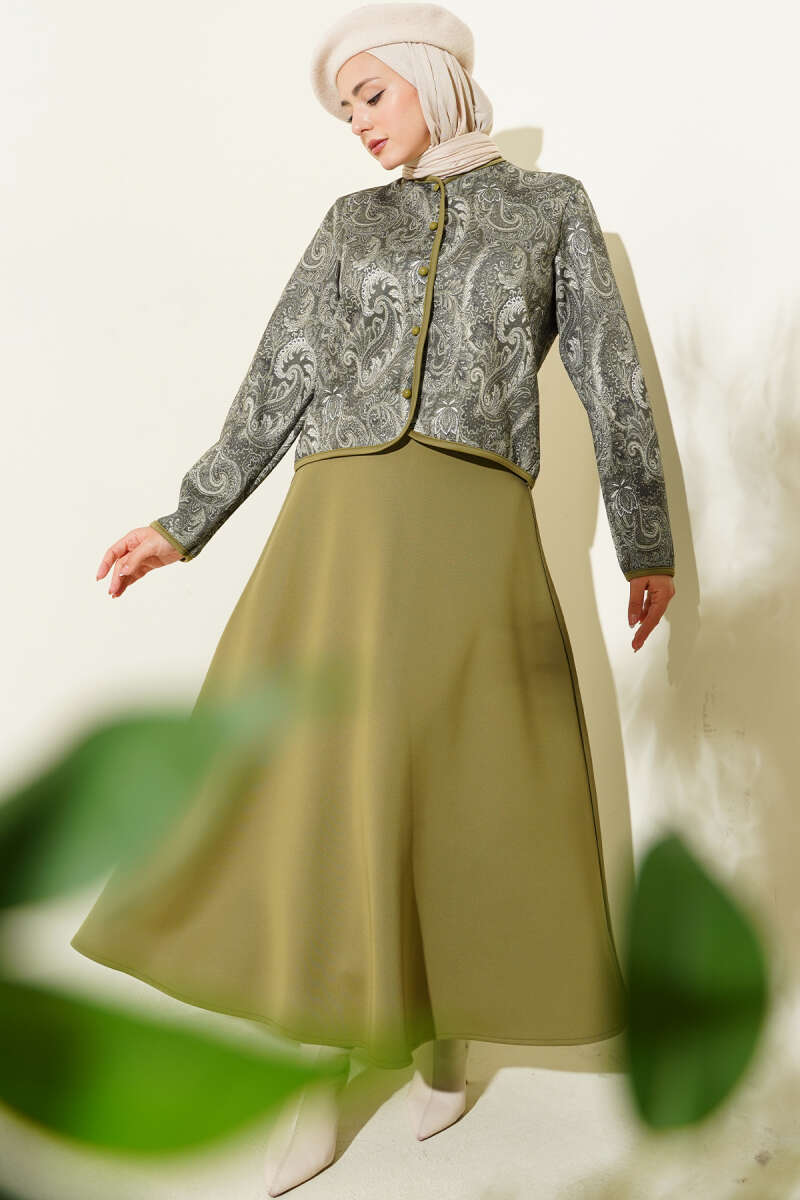 Dikiş Detaylı Basic Triko İkili Takım Haki