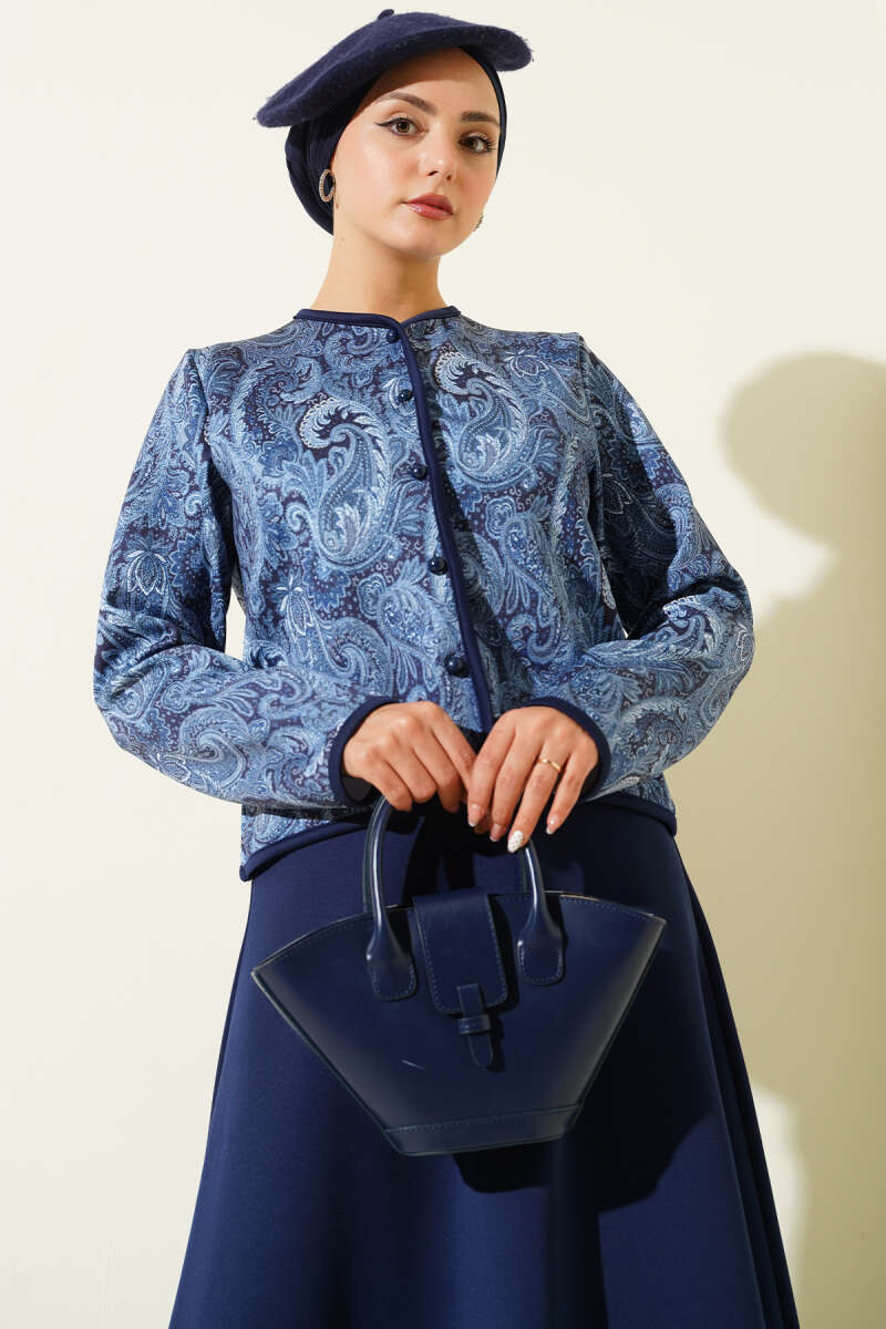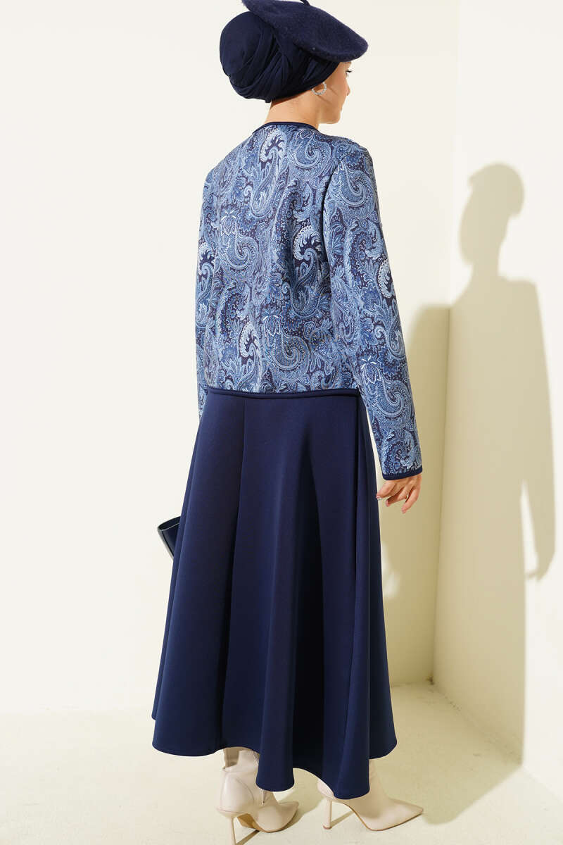 Kapitone Ceketli Etekli İkili Takım Lacivert