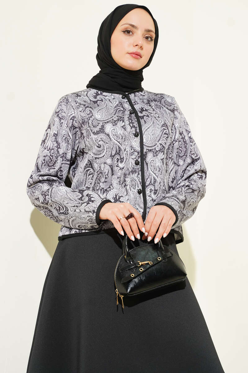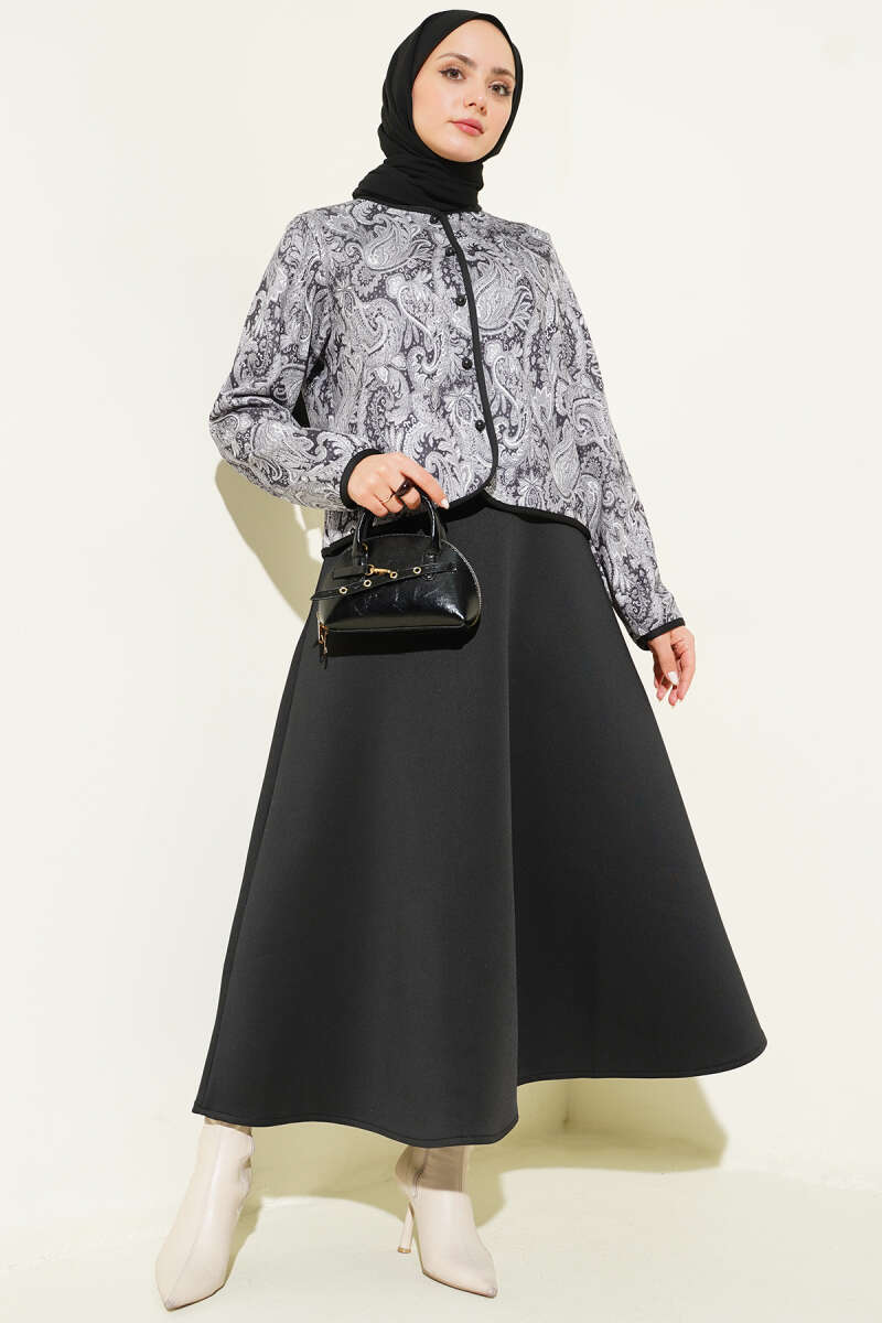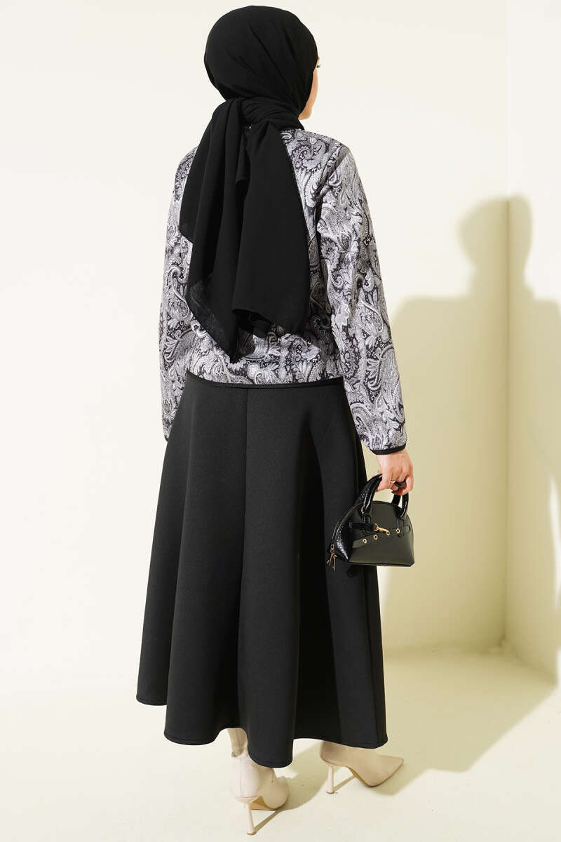Etnik Desenli Scuba Etekli İkili Takım Siyah