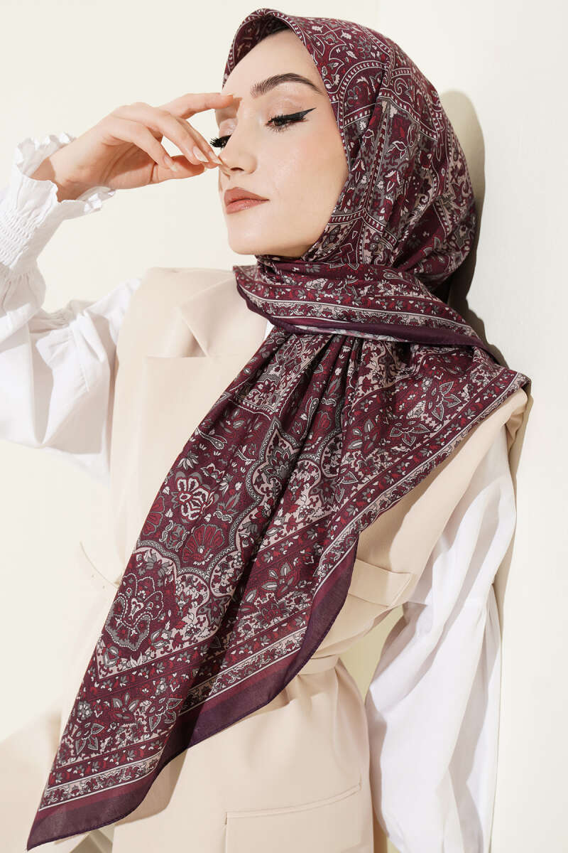 Gelince Haber VerGeleneksel etnik motiflerin modern şerit geçişleriyle buluştuğu bu eşarp, 120 cm'lik geniş ölçüsüyle hem dökümlü hem de konforlu bir kullanım sunuyor. Zengin desen detayları her kombine sanatsal bir derinlik katarken, yumuşak dokusu sayesinde gün boyu formunu koruyarak şık bir duruş sergiliyor. Kenar şerit tasarımıyla çerçevelenen estetik görünümü, hem klasik hem de spor tarzlara kusursuz bir uyumla eşlik ediyor.