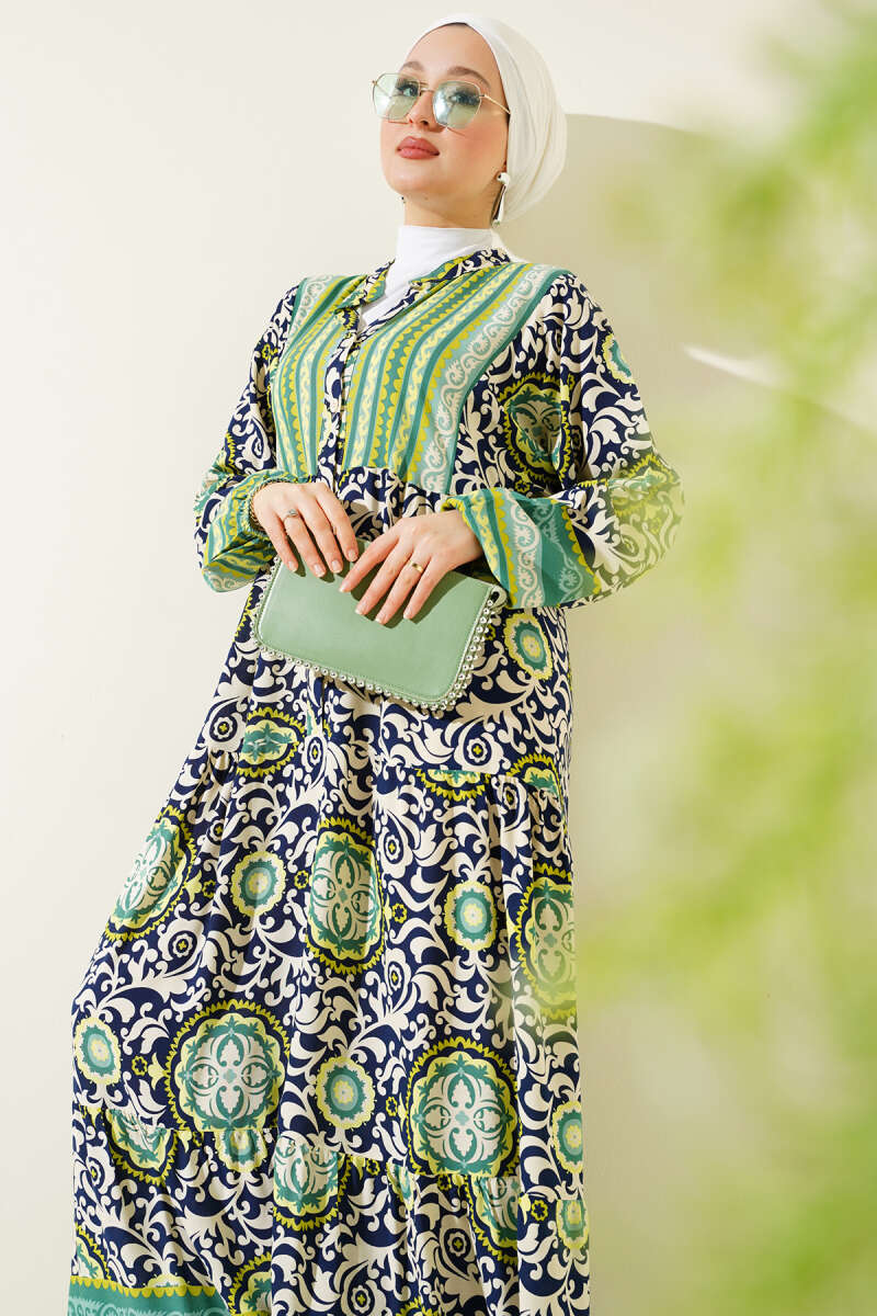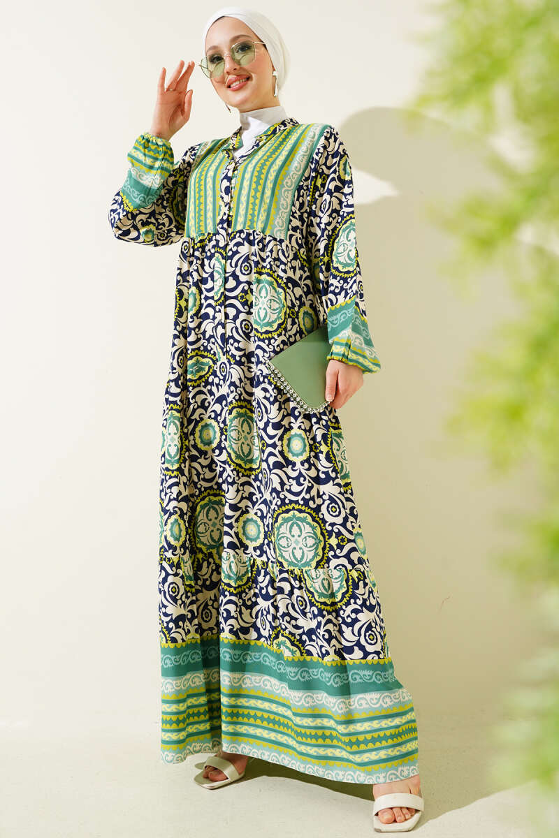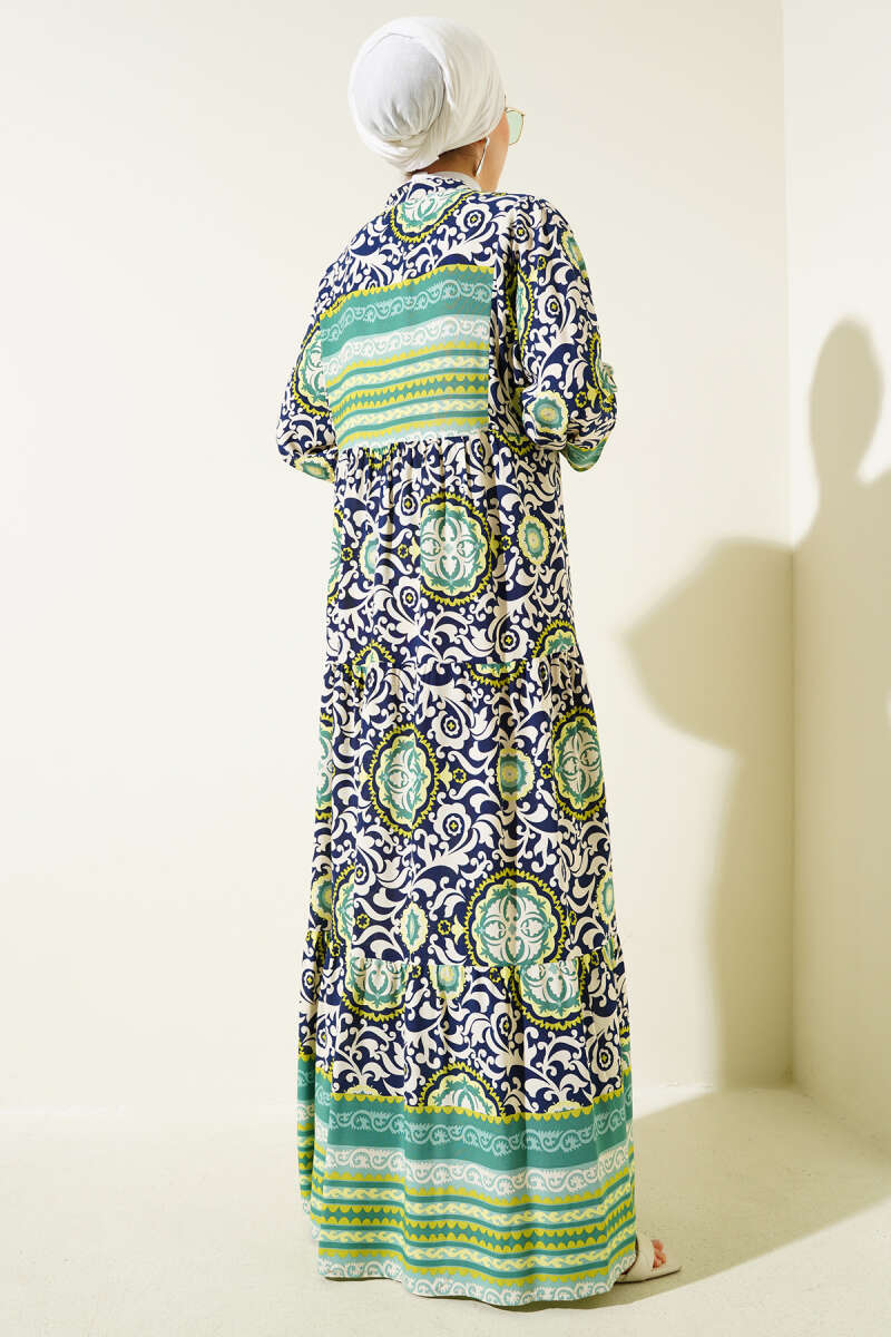 Duble Kol İp Bağcıklı Elbise Çağla Yeşili