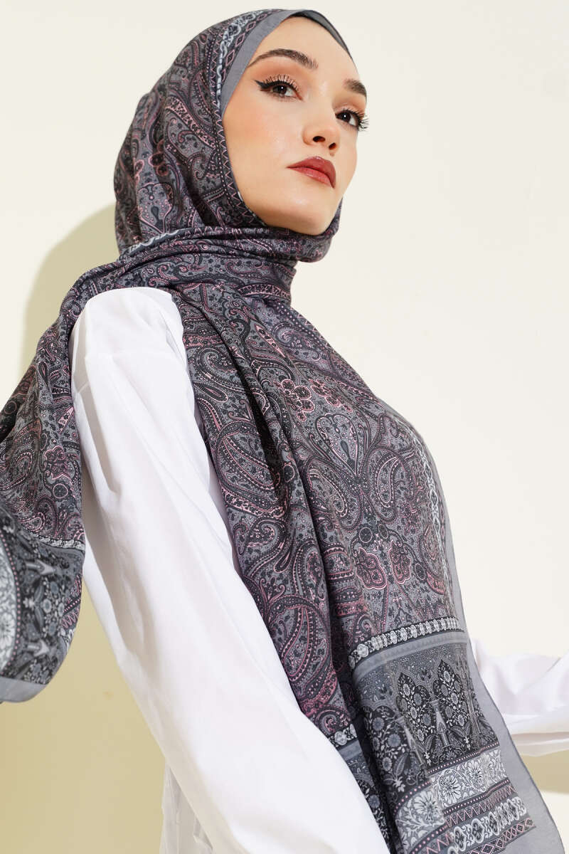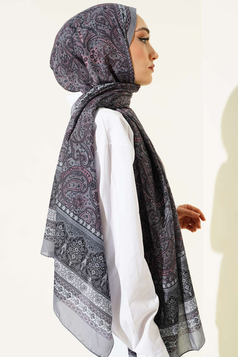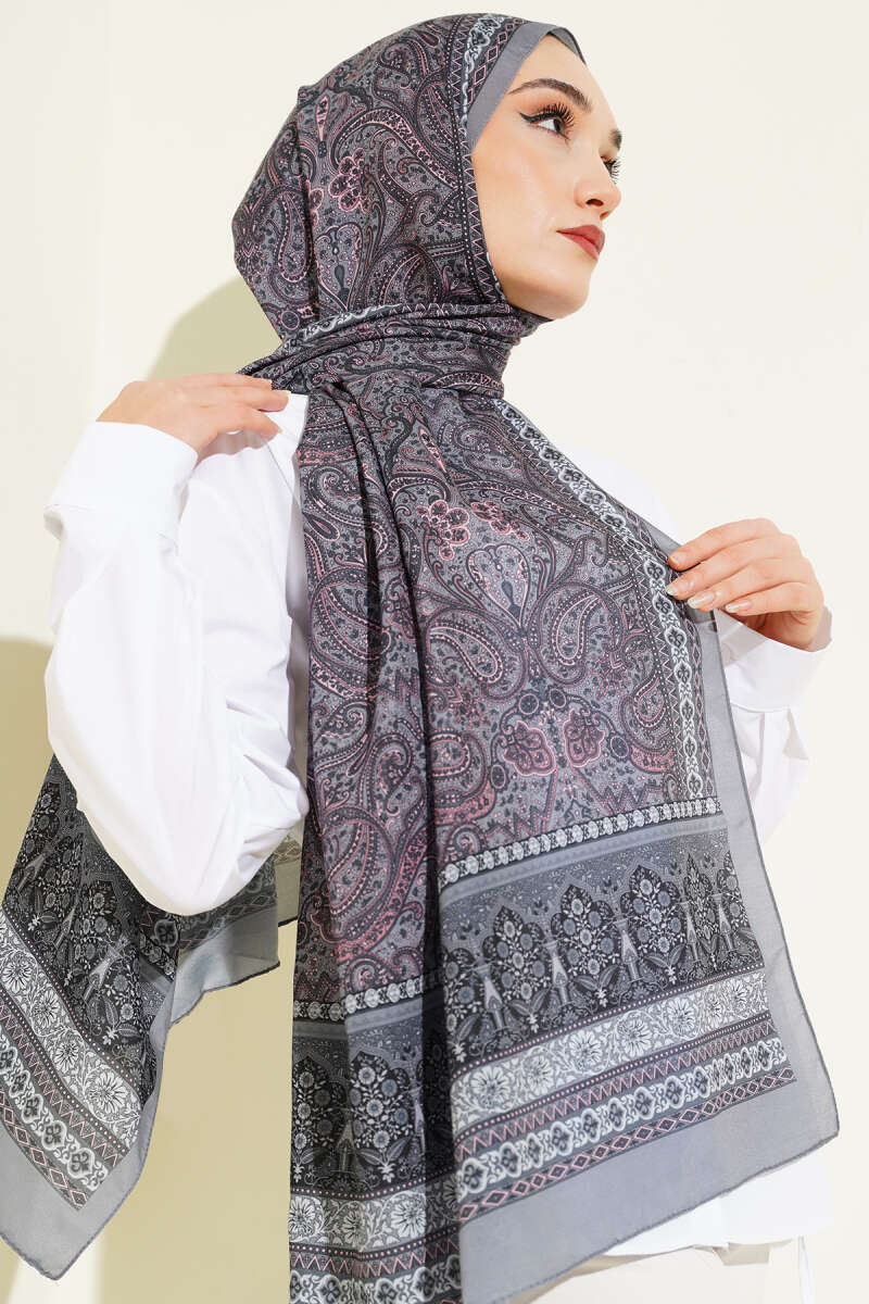 Minik Çiçek Motifli Soft Şal Siyah Vizon