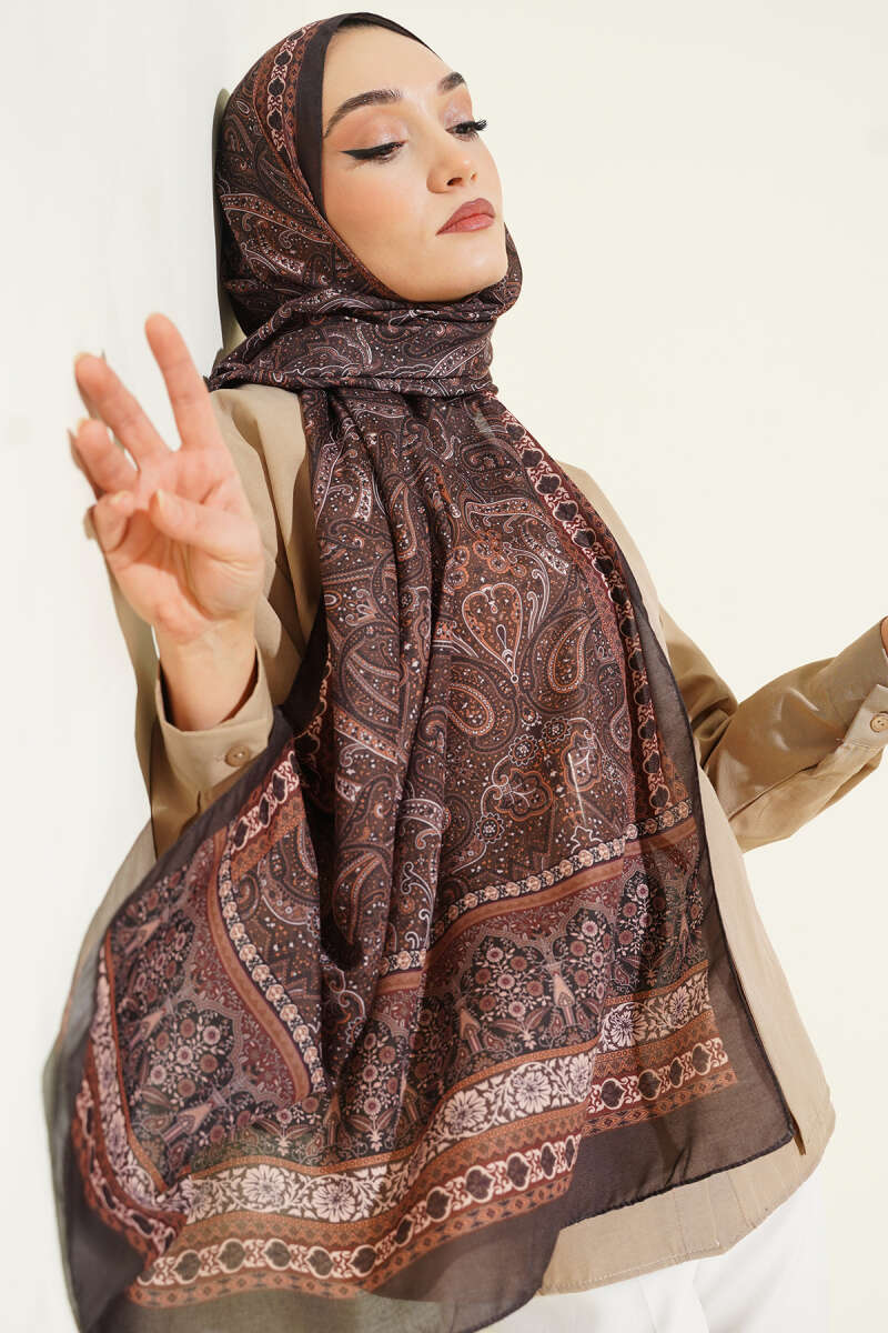 Etnik Paisley Desen Şal Füme
