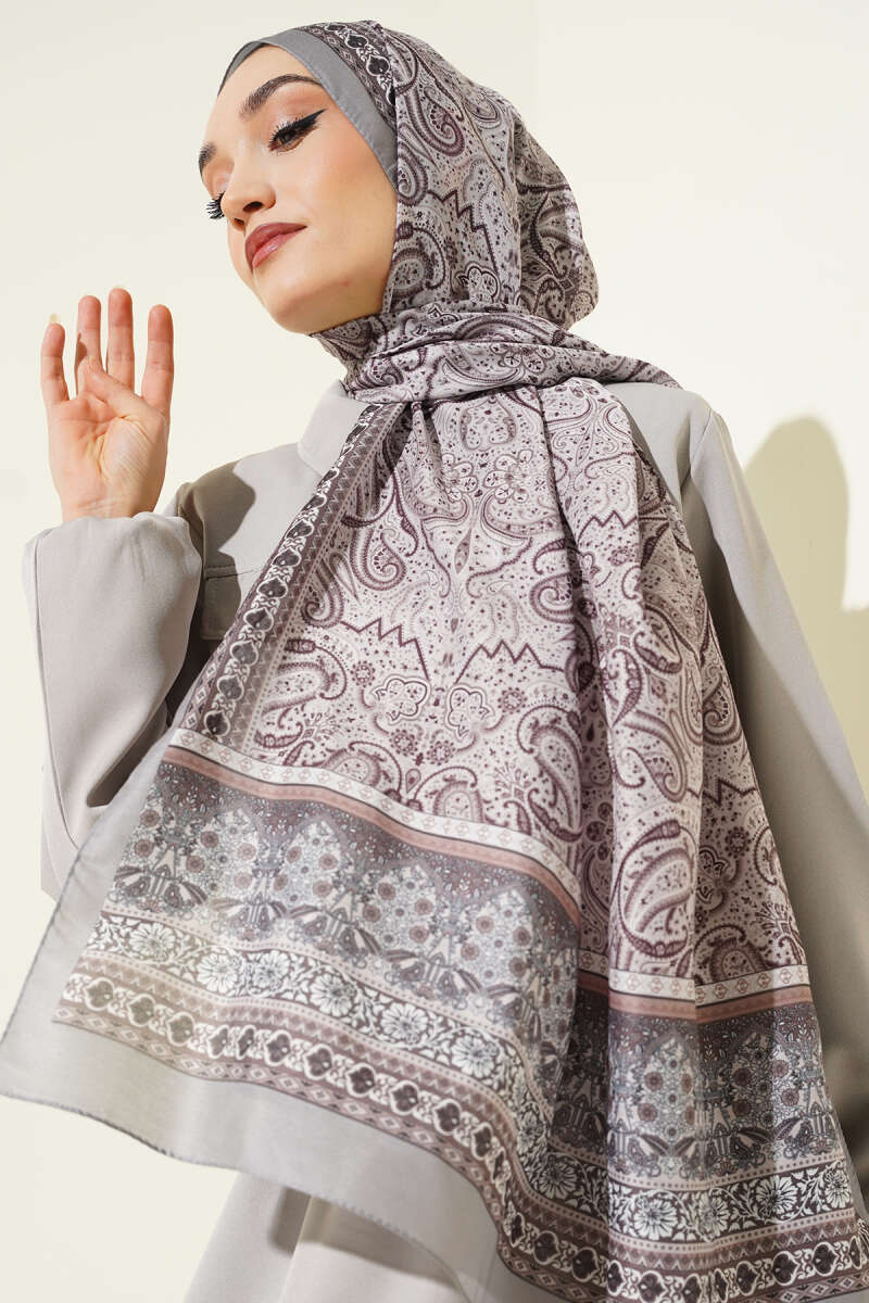 Minik Çiçek Motifli Soft Şal Vizon