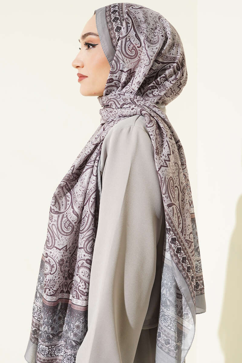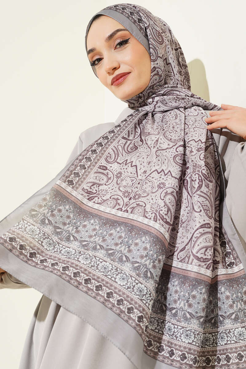 Minik Çiçek Motifli Soft Şal Füme