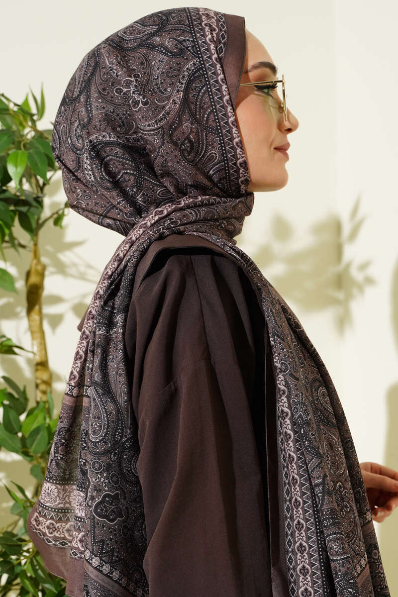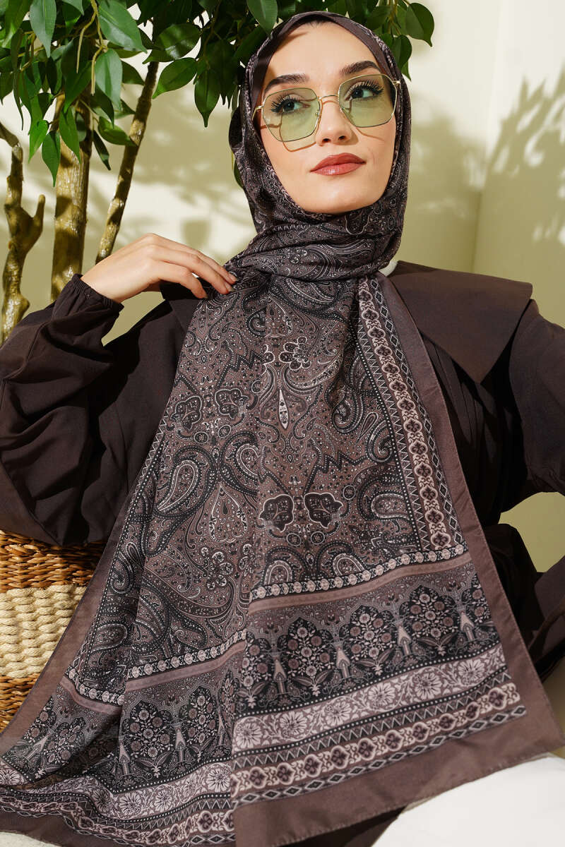 Paisley Flamu Cotton Eşarp Siyah Kahve
