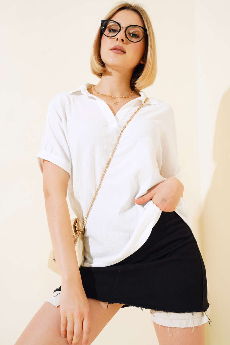 Yeni sezon bluzumuz sizlerle beraber. Bluzumuz fakir koldur. Gömlek yak olup, v yakadır. Bürümcük kumaştır. Gömleğimiz salaş modeldir. Renk seçenekleri olan bluz modelimiz yaz ve bahar aylarının favorisi olacaktır.
