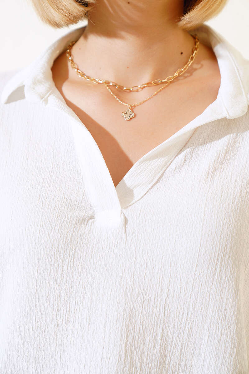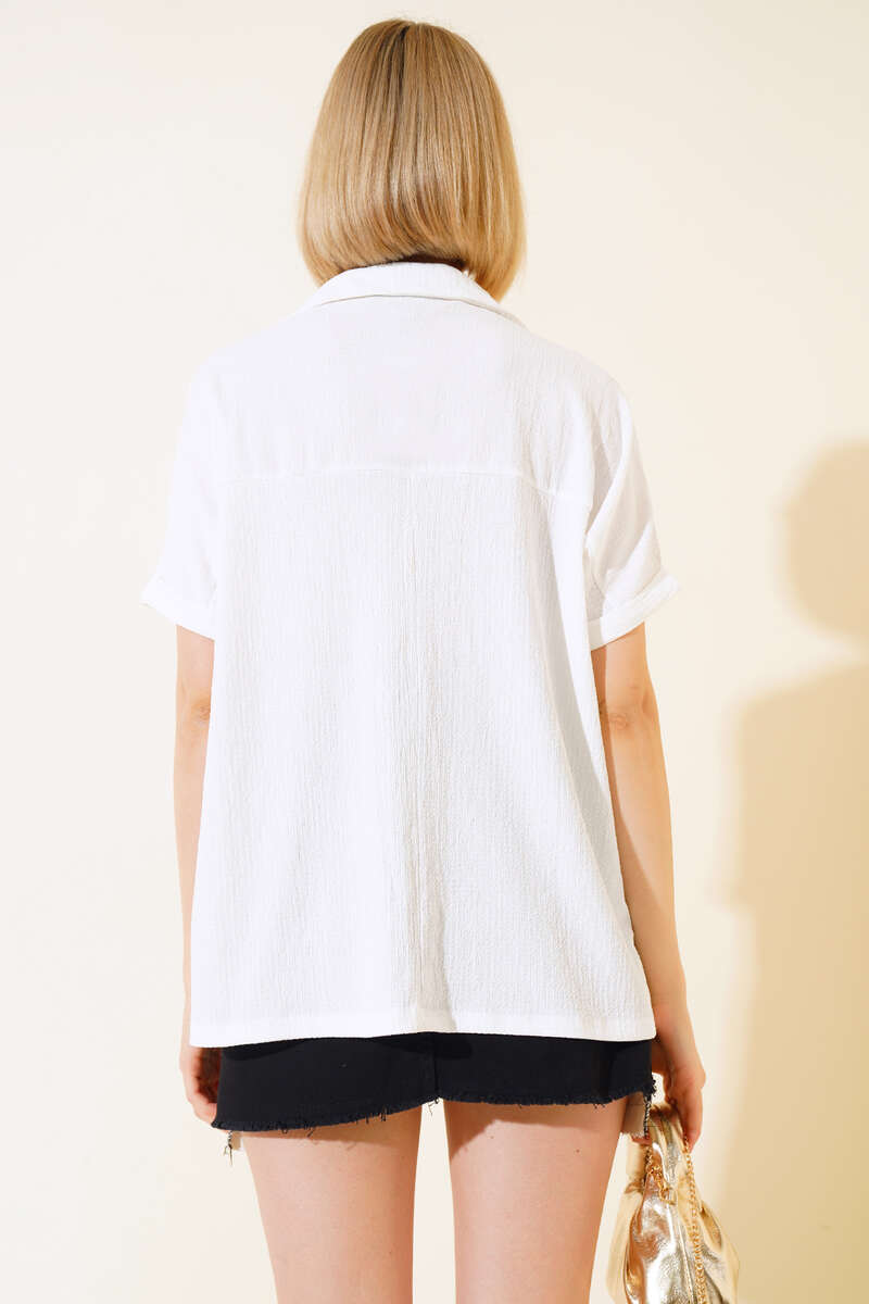 Fakir Kol Bürümcük Bluz Beyaz