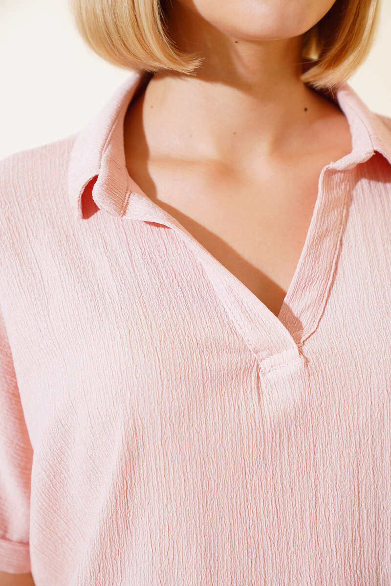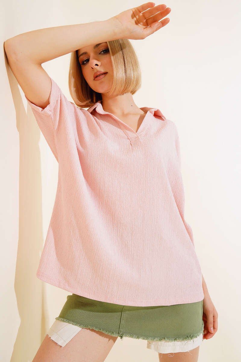 Yeni sezon bluzumuz sizlerle beraber. Bluzumuz fakir koldur. Gömlek yak olup, v yakadır. Bürümcük kumaştır. Gömleğimiz salaş modeldir. Renk seçenekleri olan bluz modelimiz yaz ve bahar aylarının favorisi olacaktır.