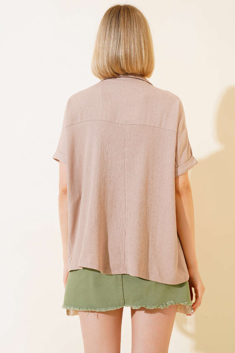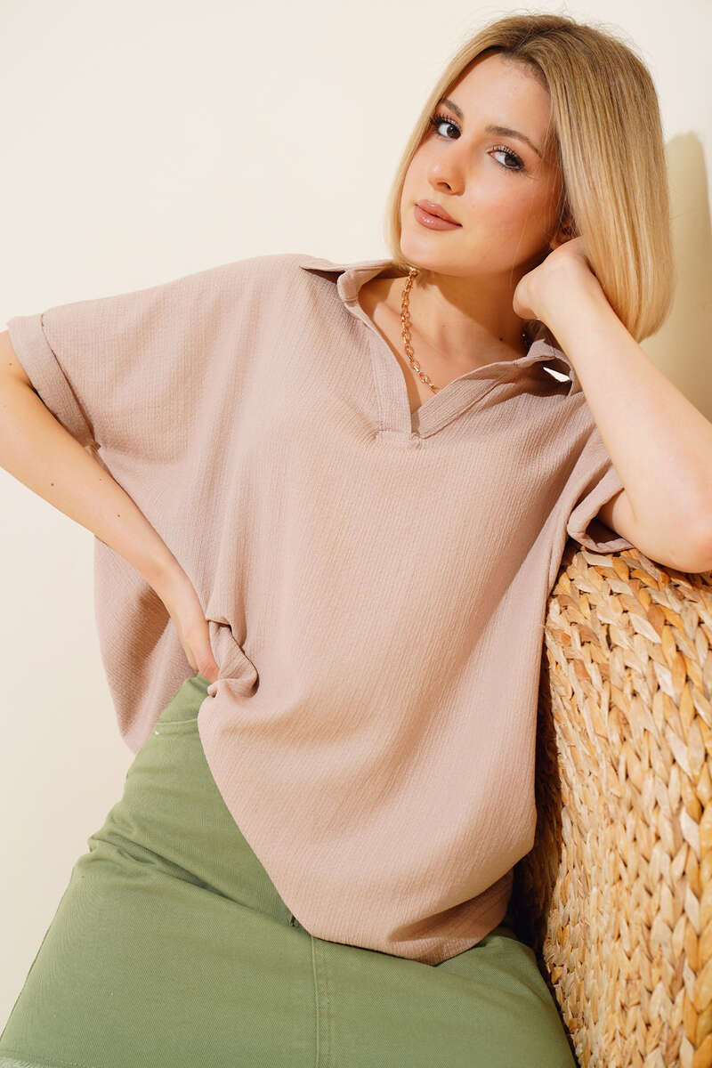 Yeni sezon bluzumuz sizlerle beraber. Bluzumuz fakir koldur. Gömlek yak olup, v yakadır. Bürümcük kumaştır. Gömleğimiz salaş modeldir. Renk seçenekleri olan bluz modelimiz yaz ve bahar aylarının favorisi olacaktır.