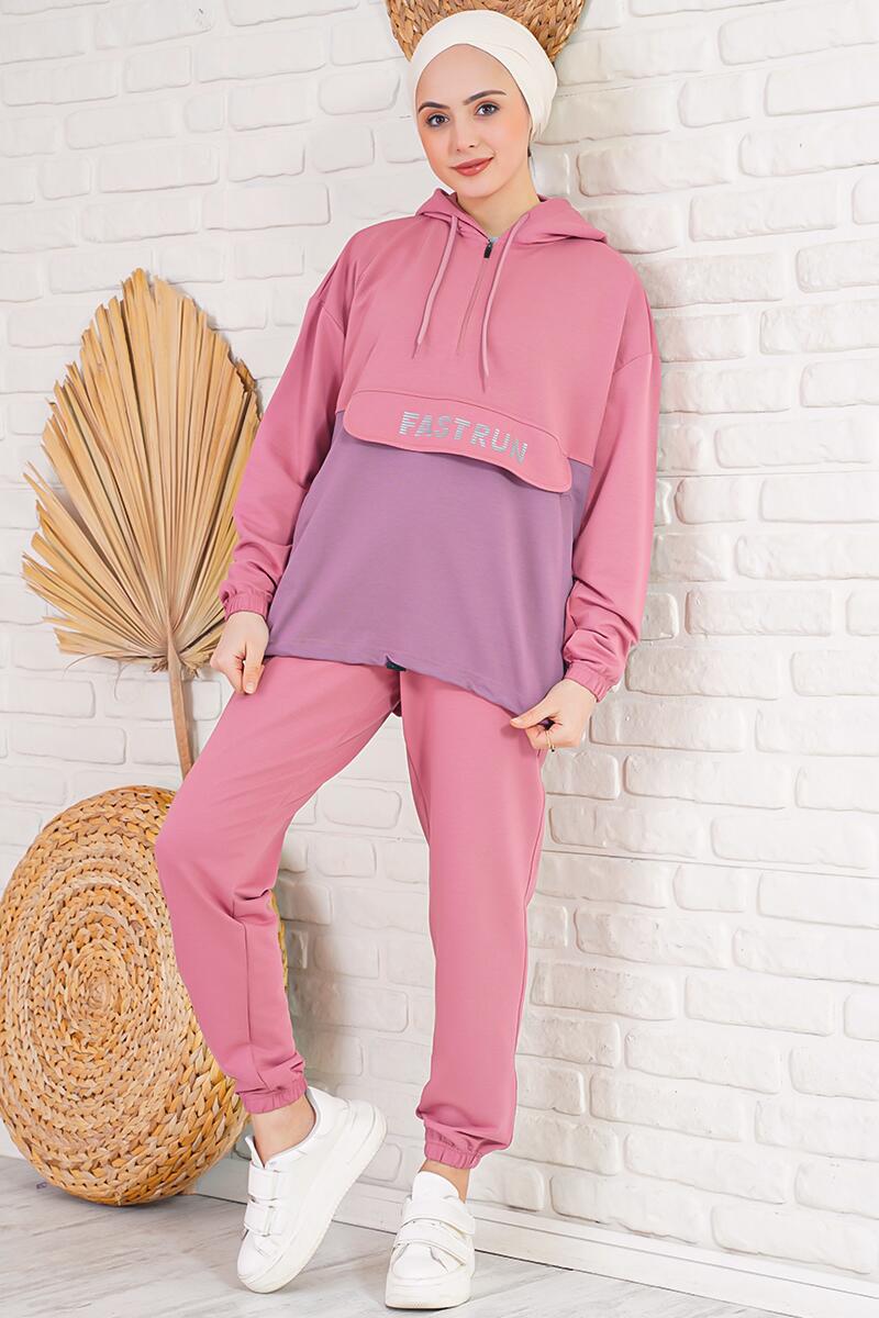 Kaliteli ve sportif bir takım sizinle. Ön kısmı yarım fermuar detaylı tunik ve kapalı kanguru cep detayı var. Rahat ve kapüşonu olan üst sweat tuniktir. Kolları ribanalıdır. Etek ucu ayarlamalı lastiklidir. Pantolon bilek ve bel kısmı lastiklidir. Cep detayı vardır. Düz desensiz ama hoş bir takımdır. Sizin rahat bir gün geçirmenizde destekçiniz olacaktır.