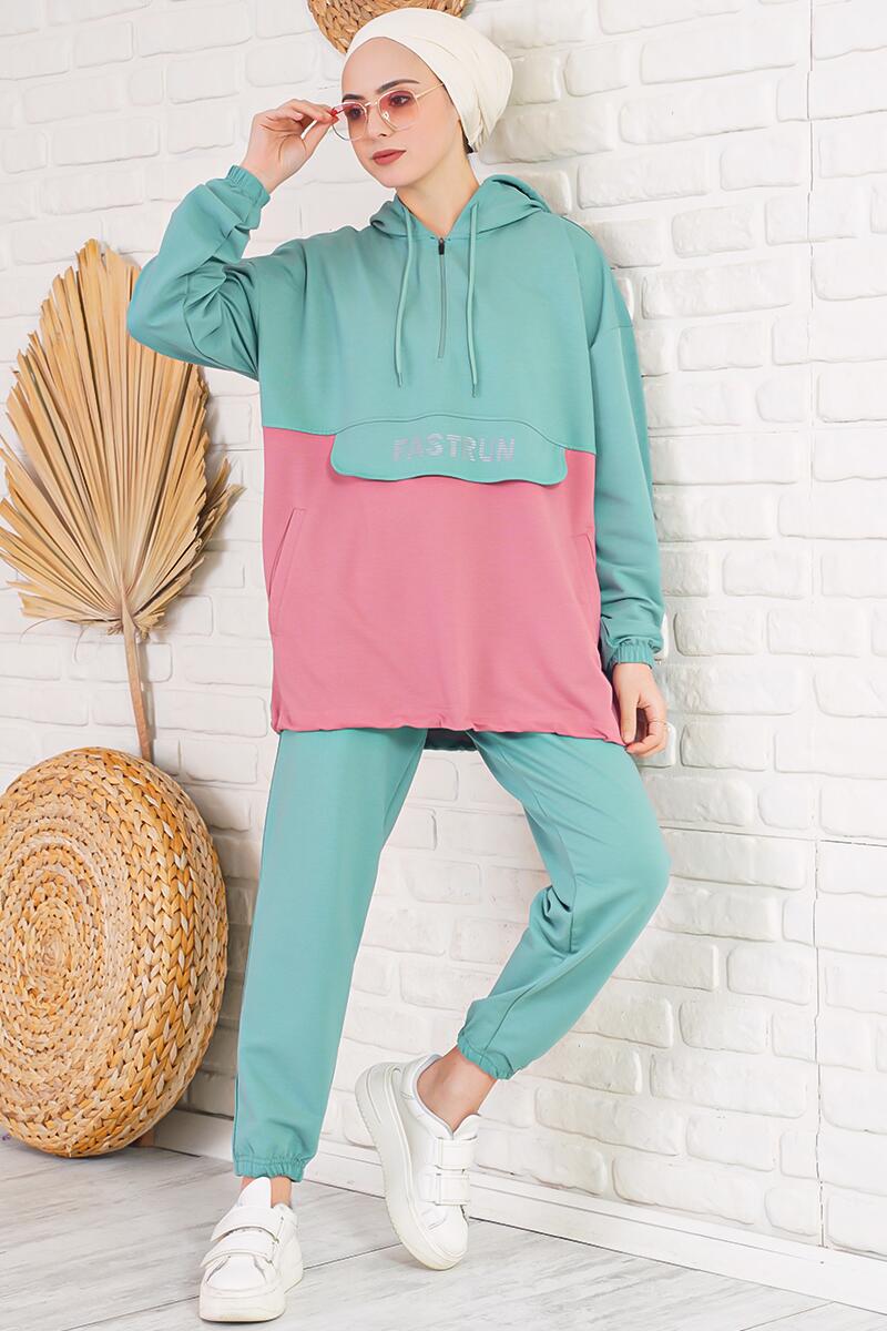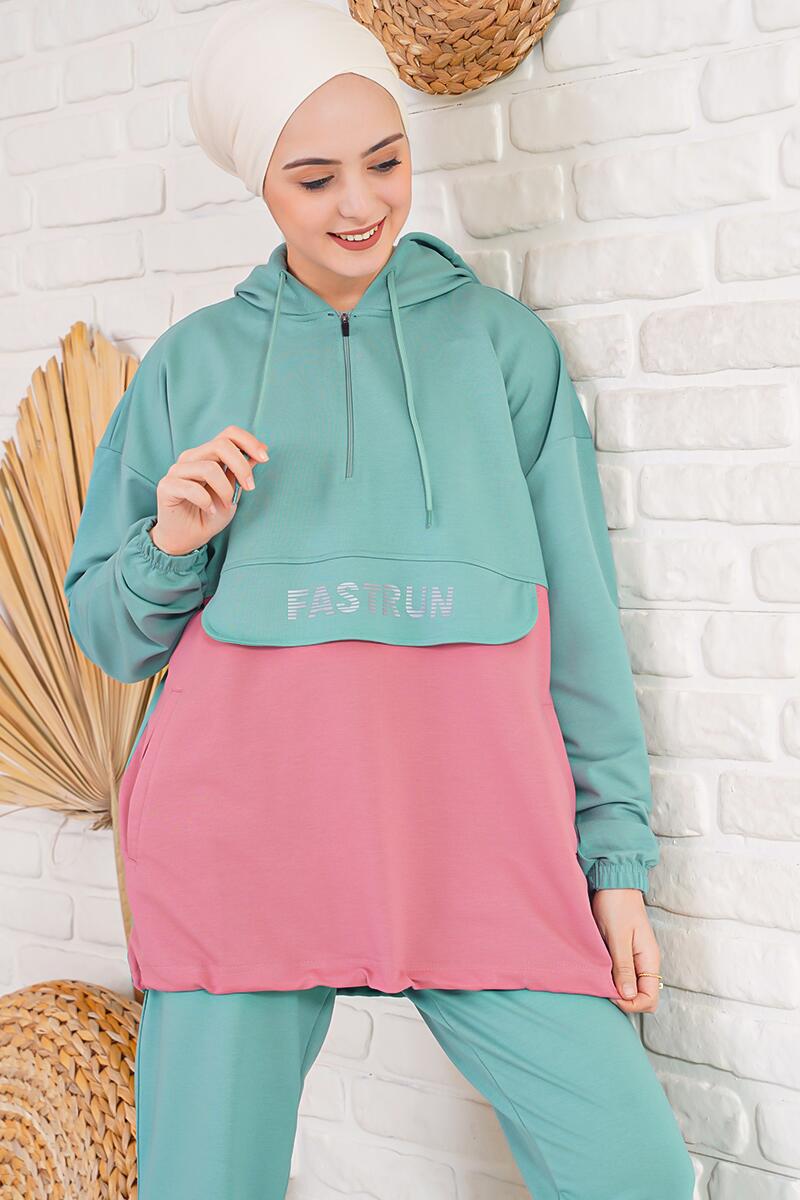 Fastrun Fermuarlı Mint Yeşili İkili Takım