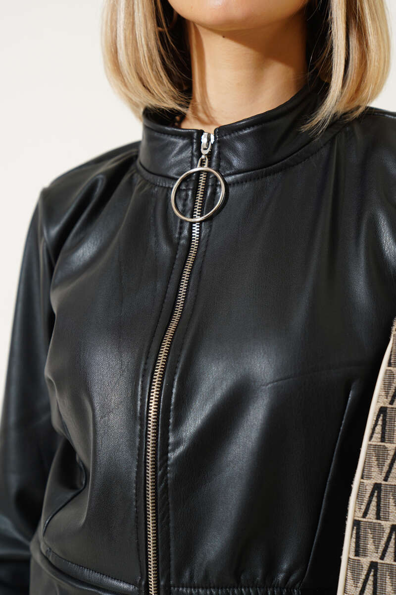 Fermuarlı Kapüşonlu Kısa Şişme Mont Siyah