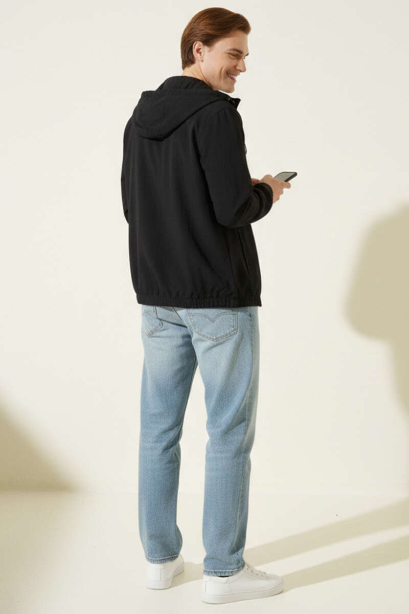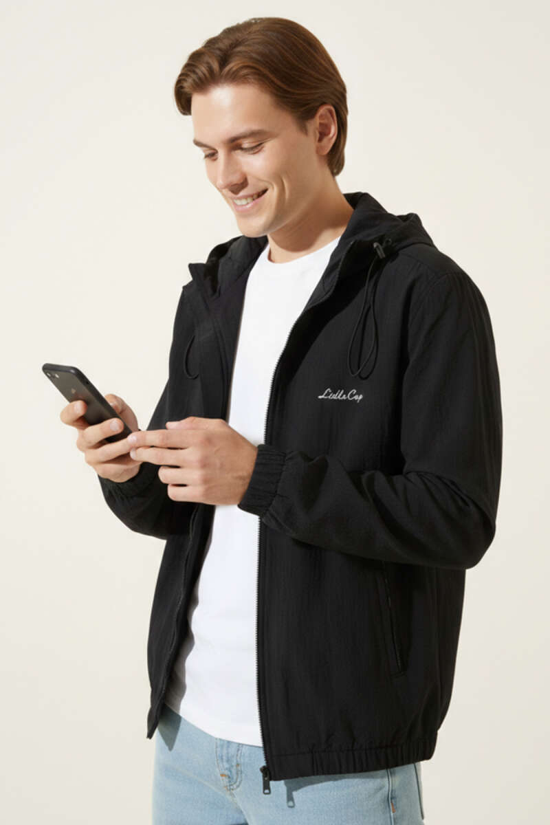 Kapüşonlu Cepli Mevsimlik Erkek Mont Siyah