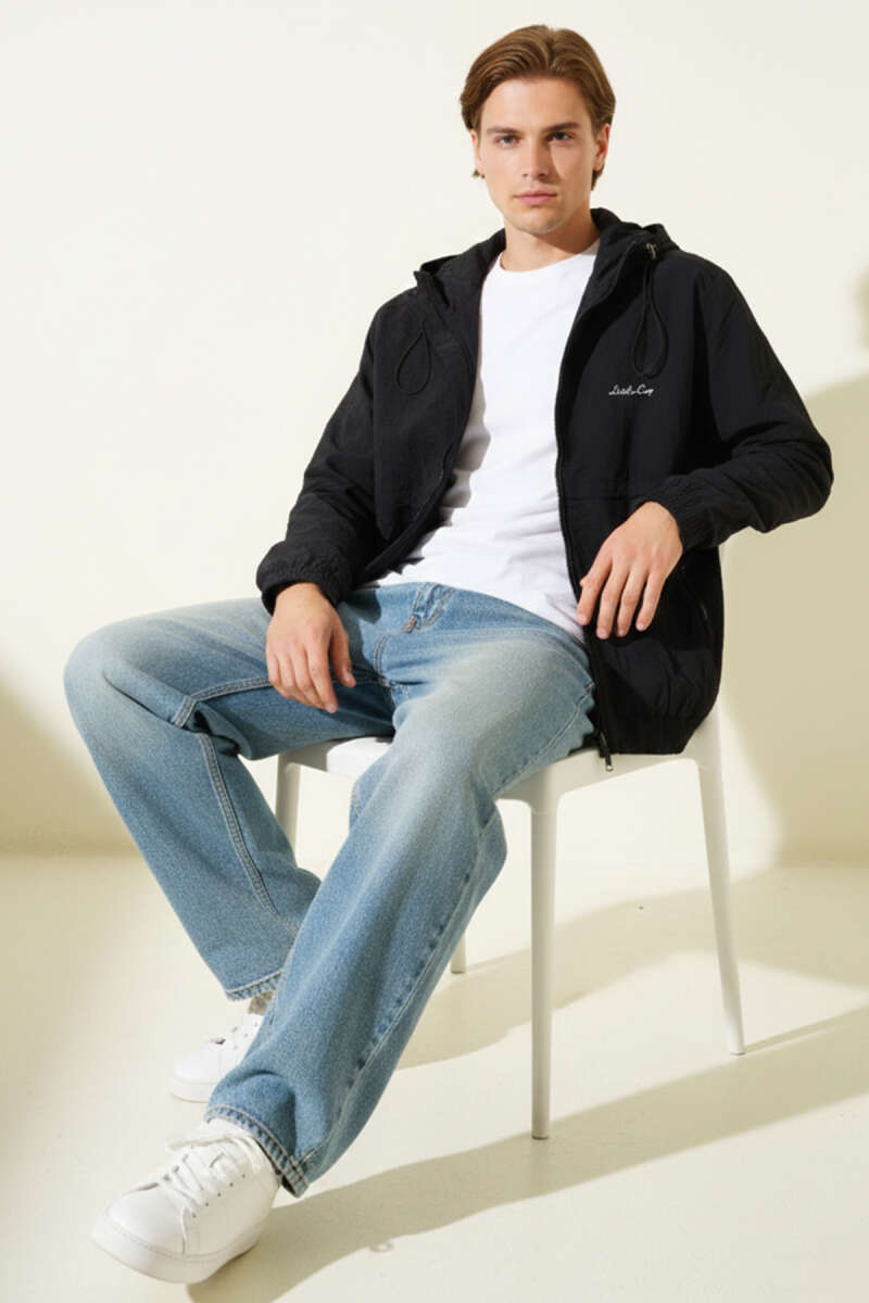 Fermuar Cepli Erkek Mevsimlik Mont Siyah