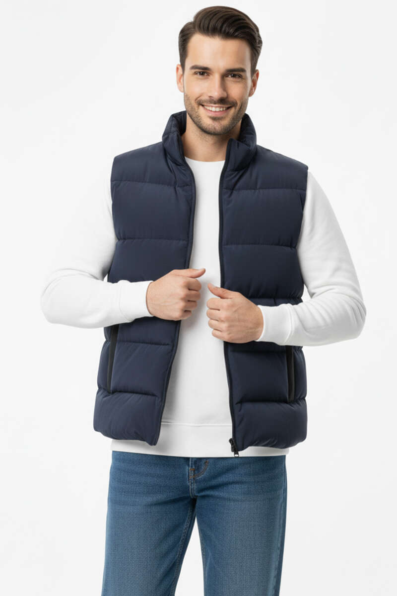Kapüşonlu Şişme Erkek Yelek Lacivert