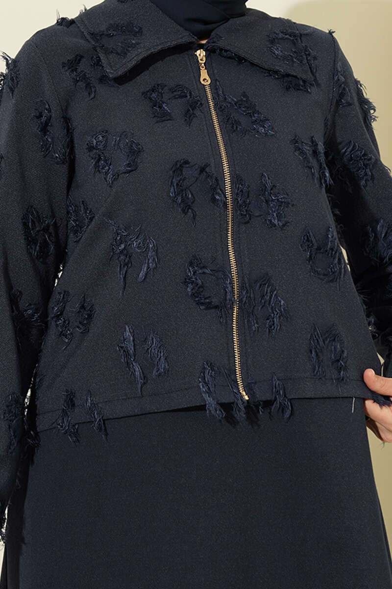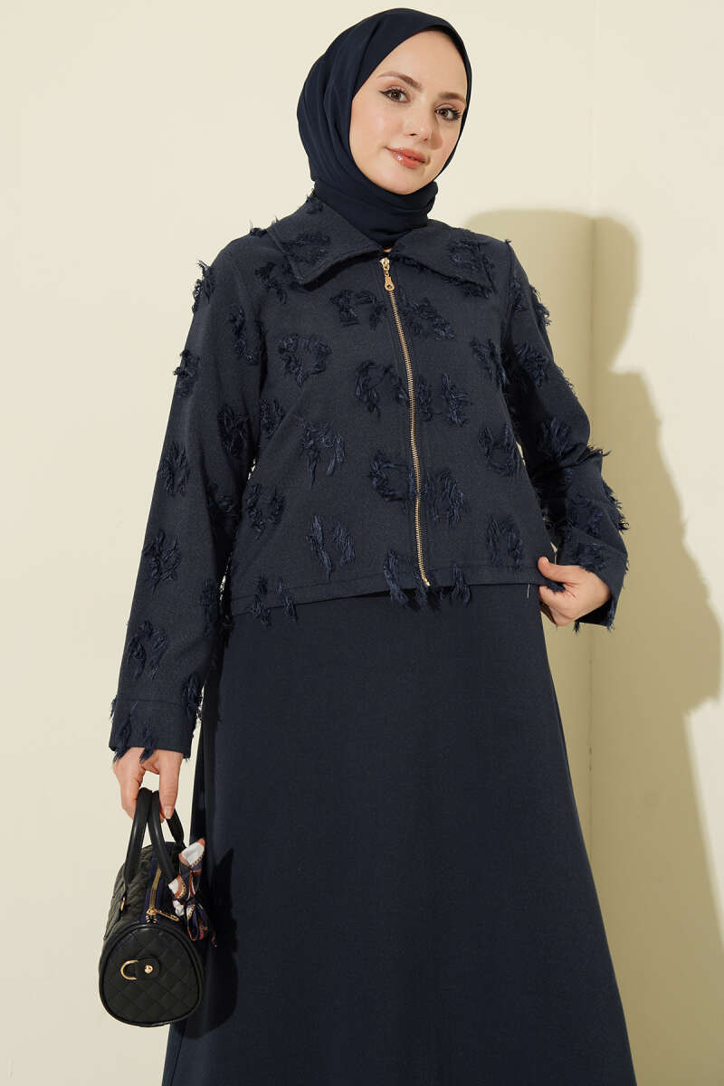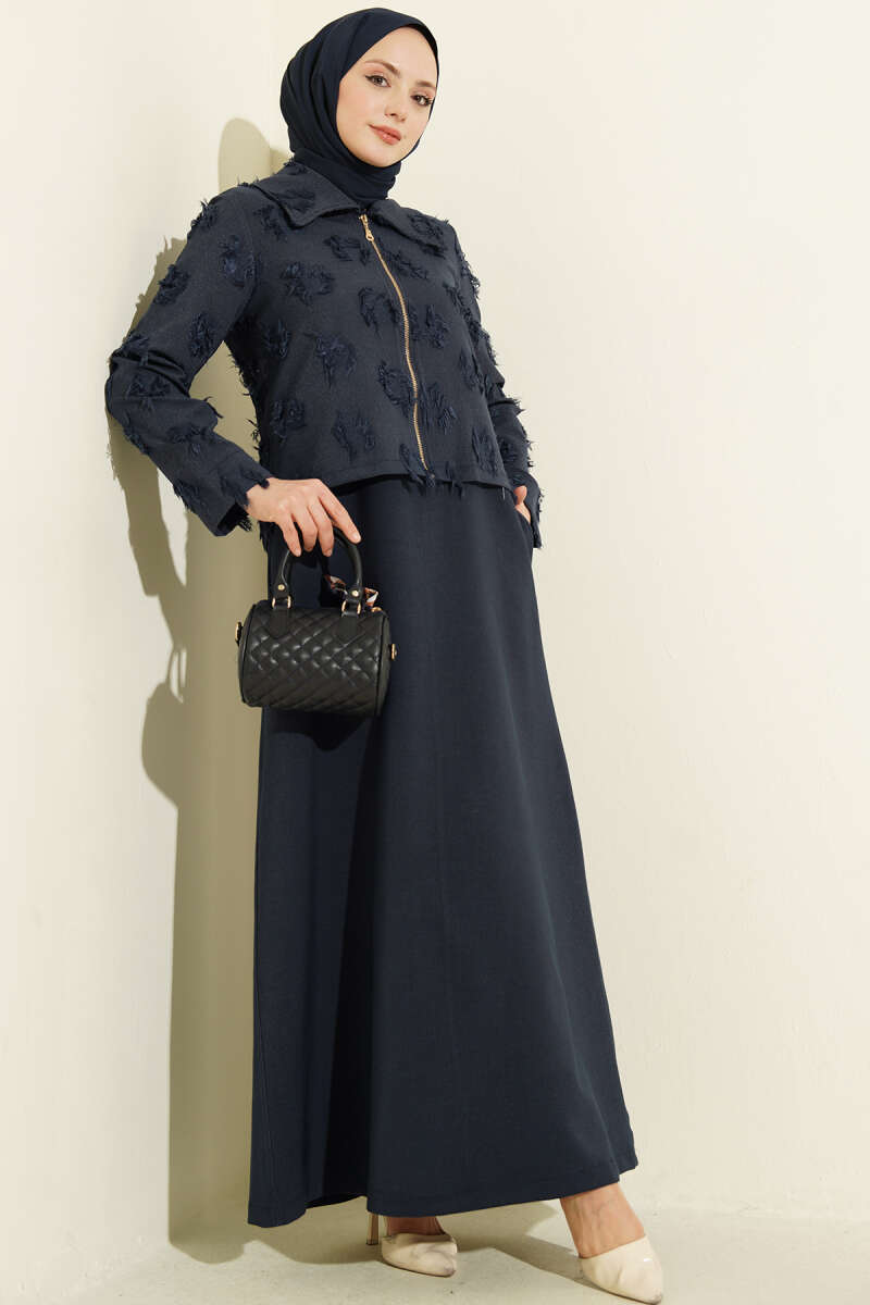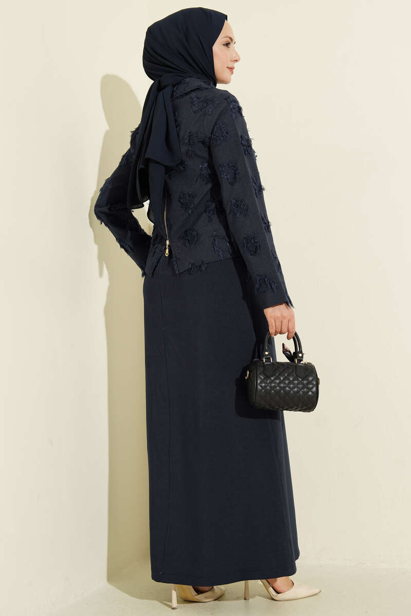 Pile Detaylı Jile Elbise Takım Lacivert