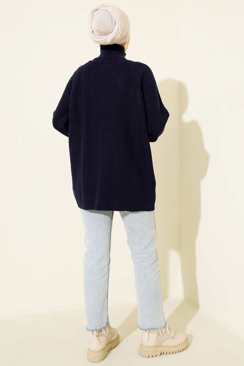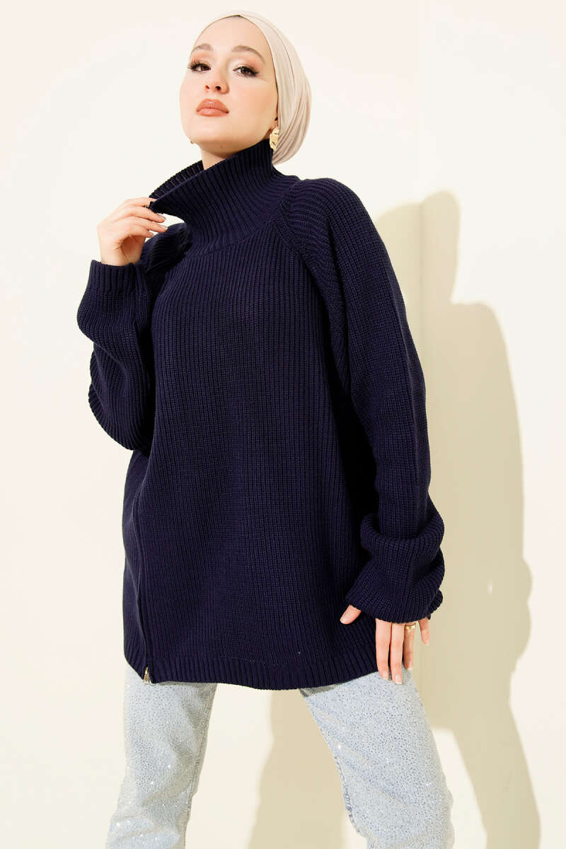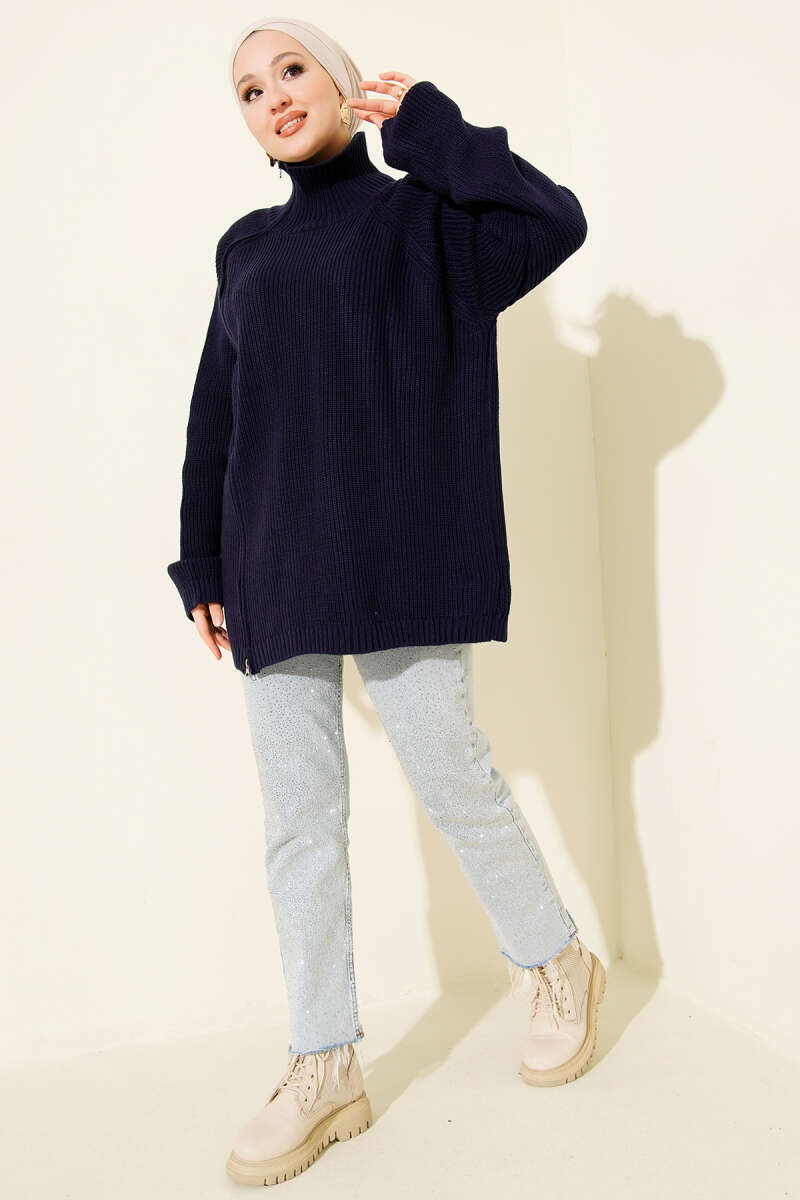 Fermuar Detaylı Triko Tunik Siyah
