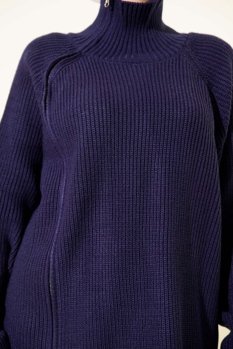 Fermuar Detaylı Triko Tunik Bordo