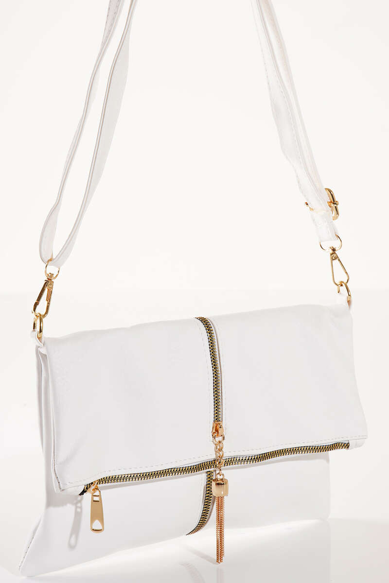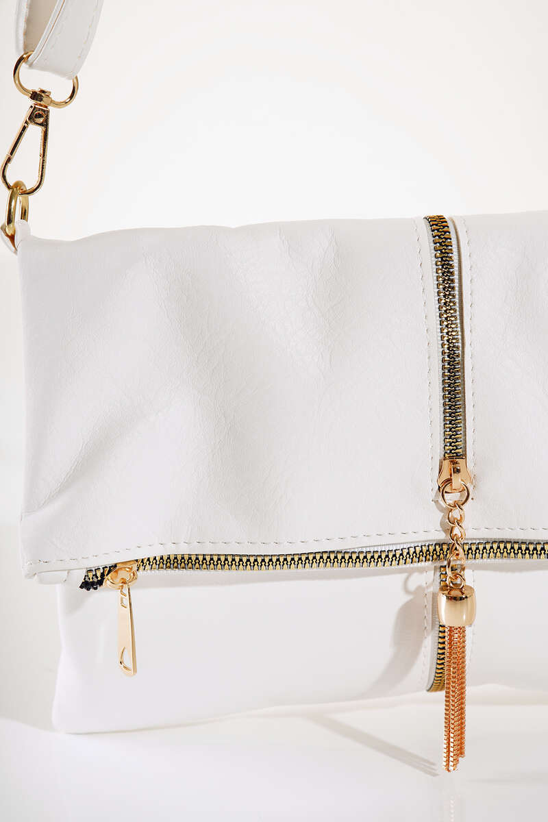 Kanca Detaylı Fermuarlı Rugan Çanta Pudra