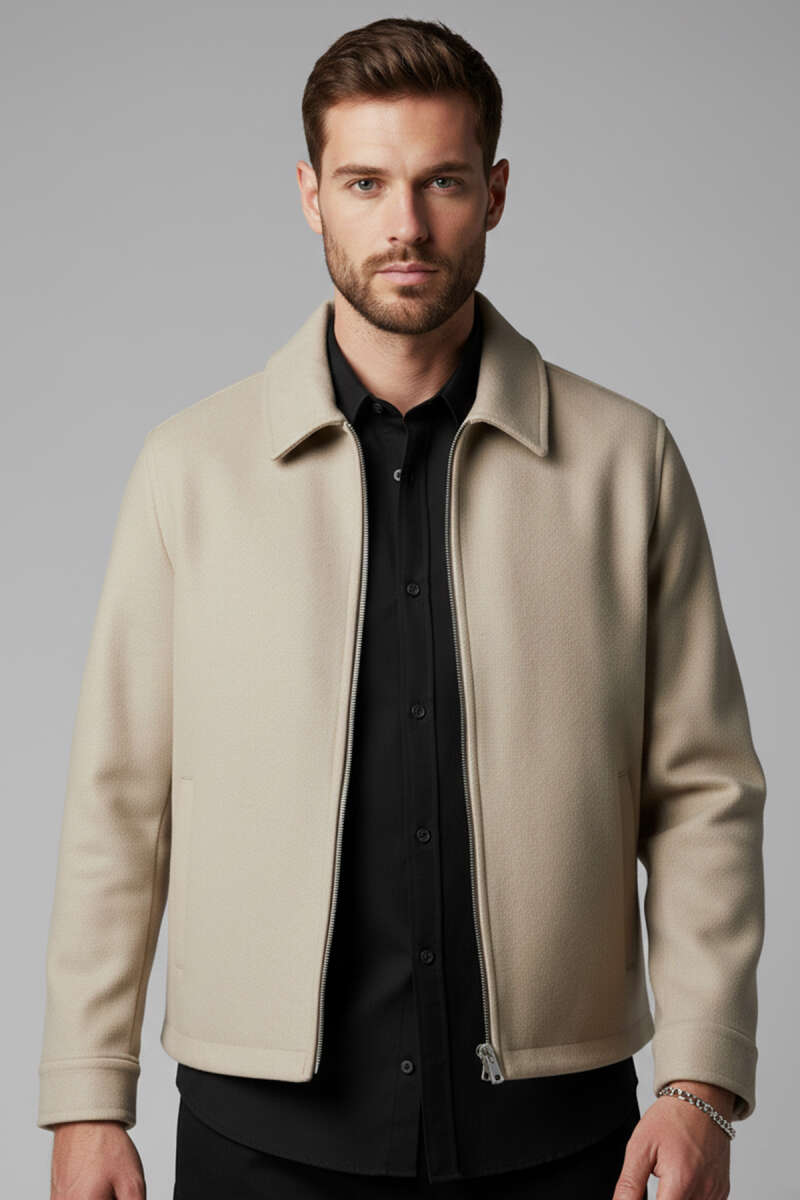 Fermuarlı Astarlı Erkek Kaşe Mont Siyah