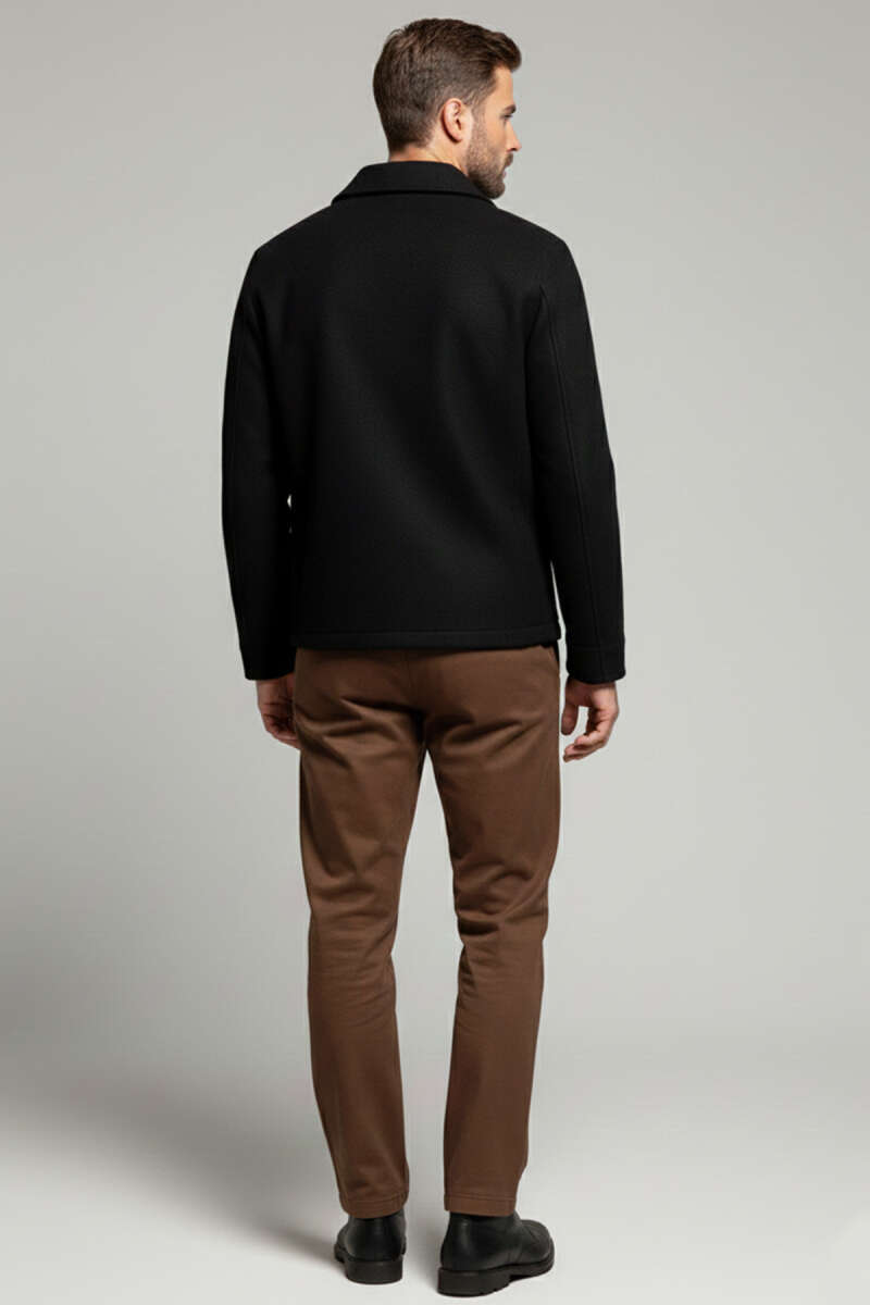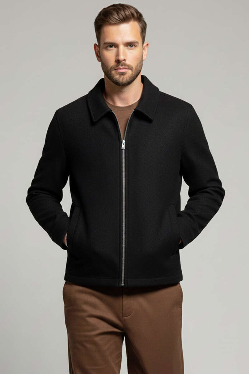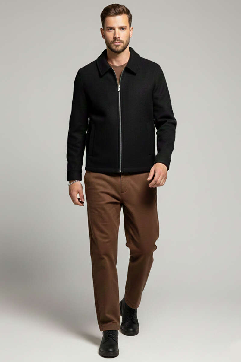 Fermuarlı Bel Lastikli Erkek Kaşe Mont Siyah
