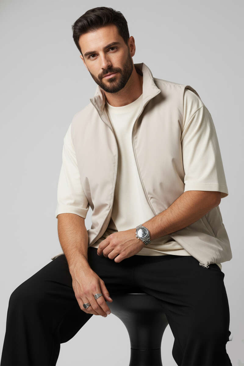 Fermuarlı Çift Cepli Erkek Yelek Bej