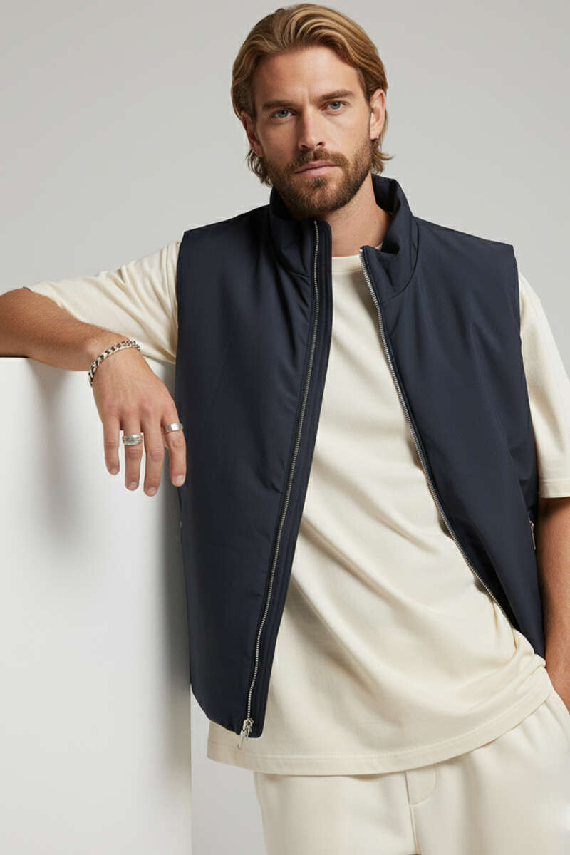 Fermuarlı Çift Cepli Erkek Yelek Bej