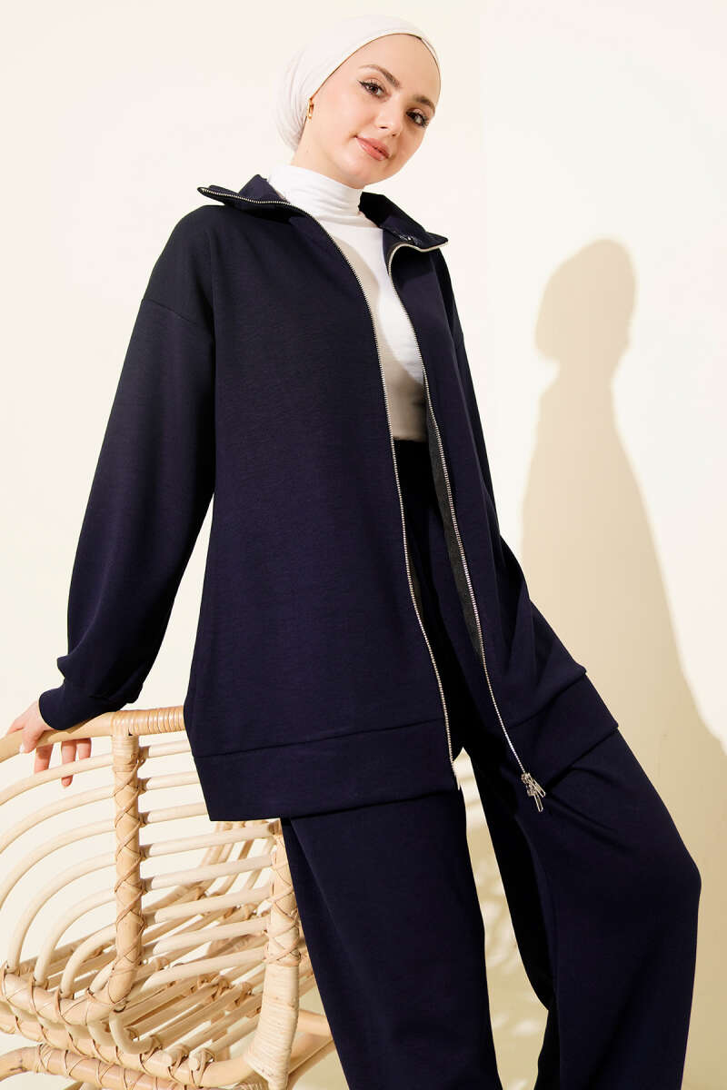 Fermuarlı Basic Loyşa İkili Takım Siyah