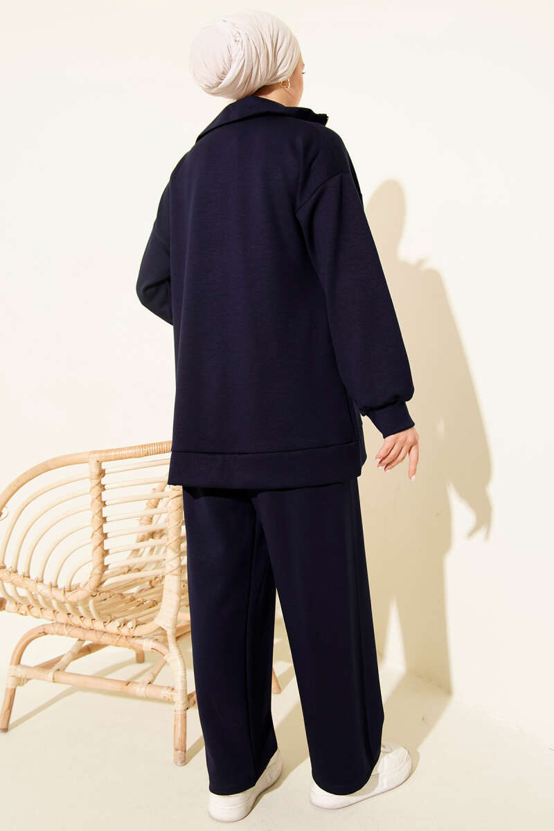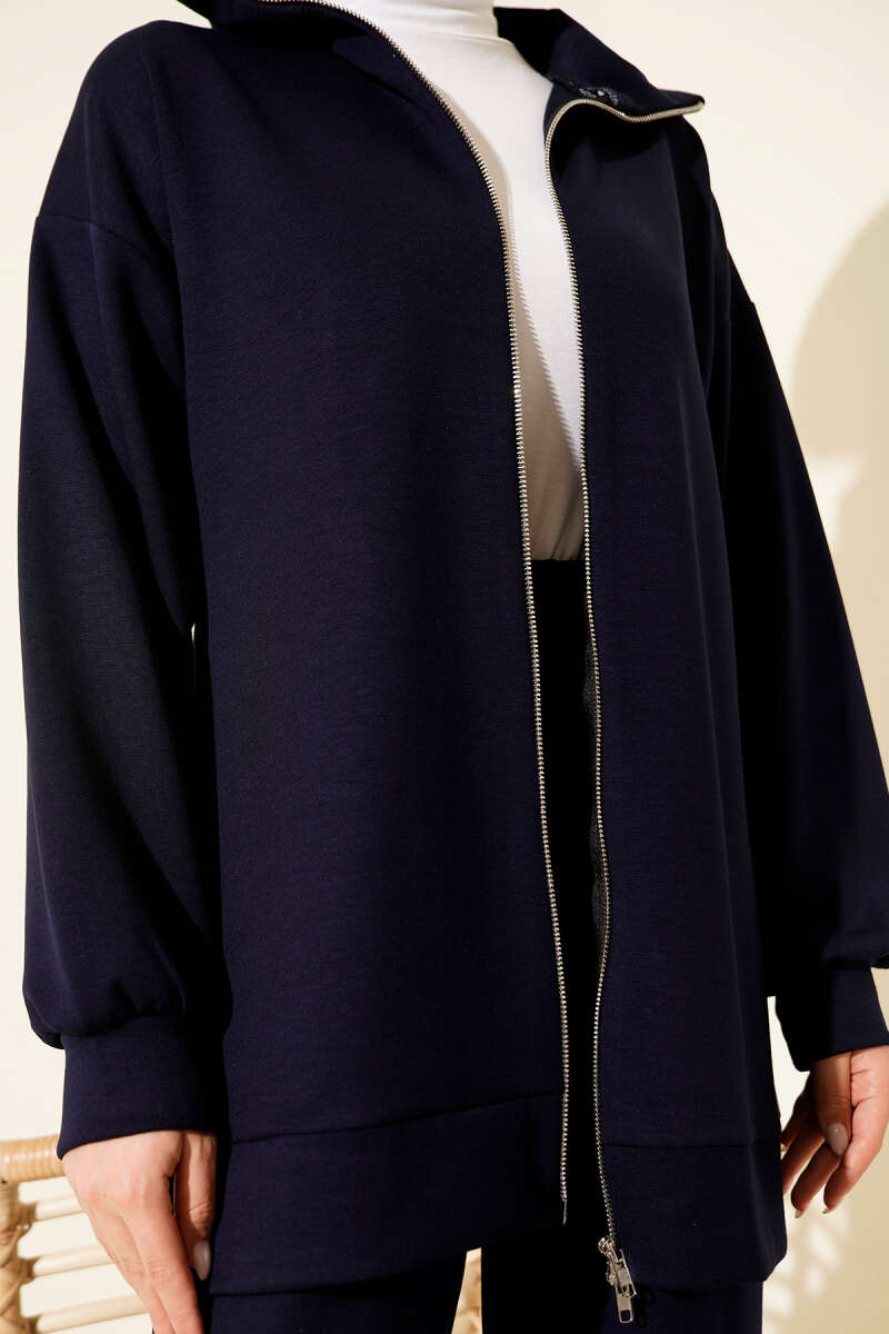 Çıtçıtlı Kapüşonlu Scuba Yelek Takım Lacivert