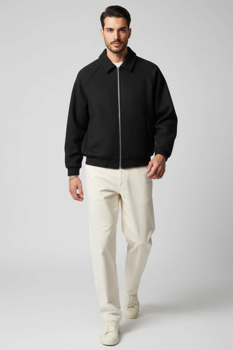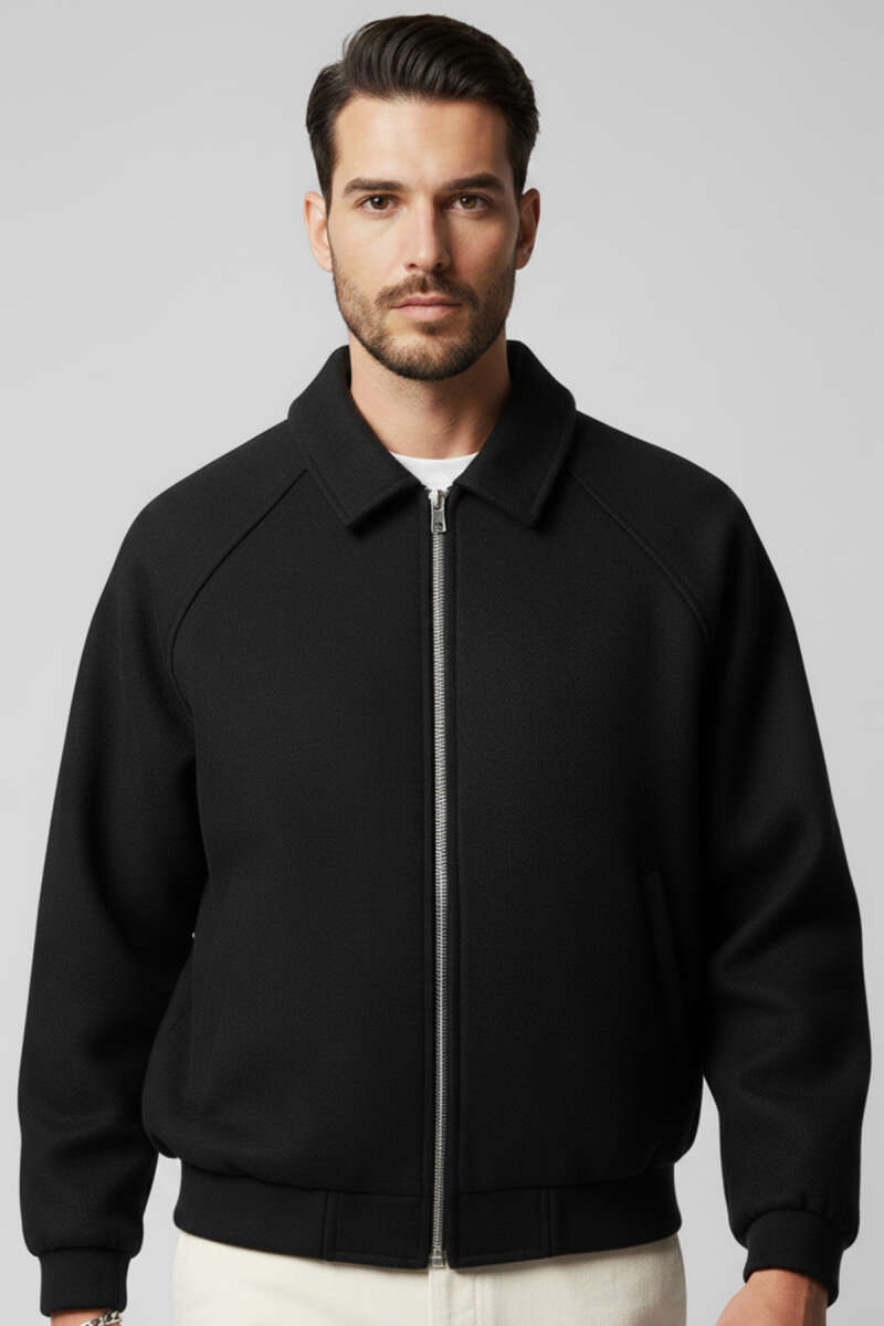Fermuarlı Astarlı Erkek Kaşe Mont Siyah