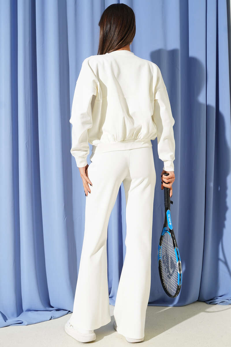 Fermuarlı Bel Lastikli İkili Takım Ekru