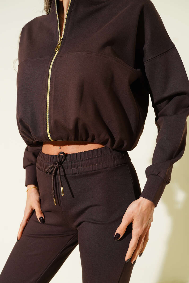Fermuarlı Bel Lastikli İkili Takım Kahve