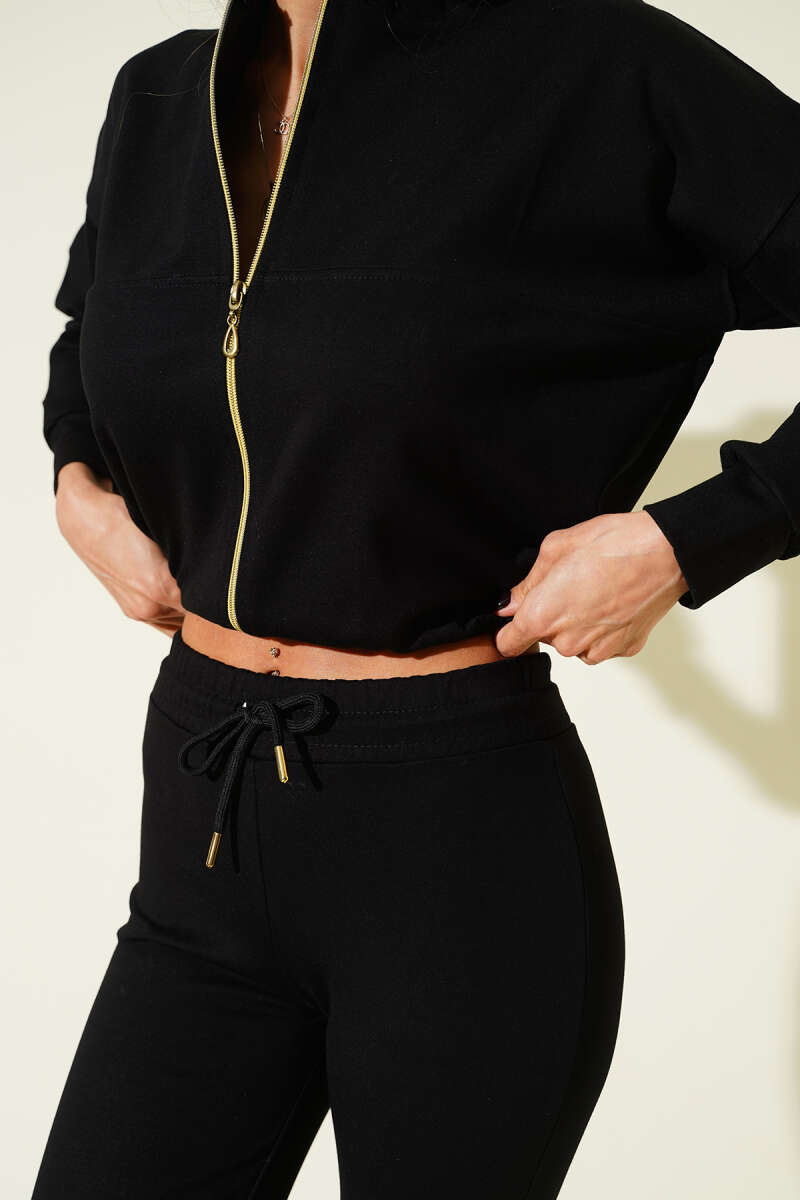 Fermuarlı Bel Lastikli İkili Takım Siyah