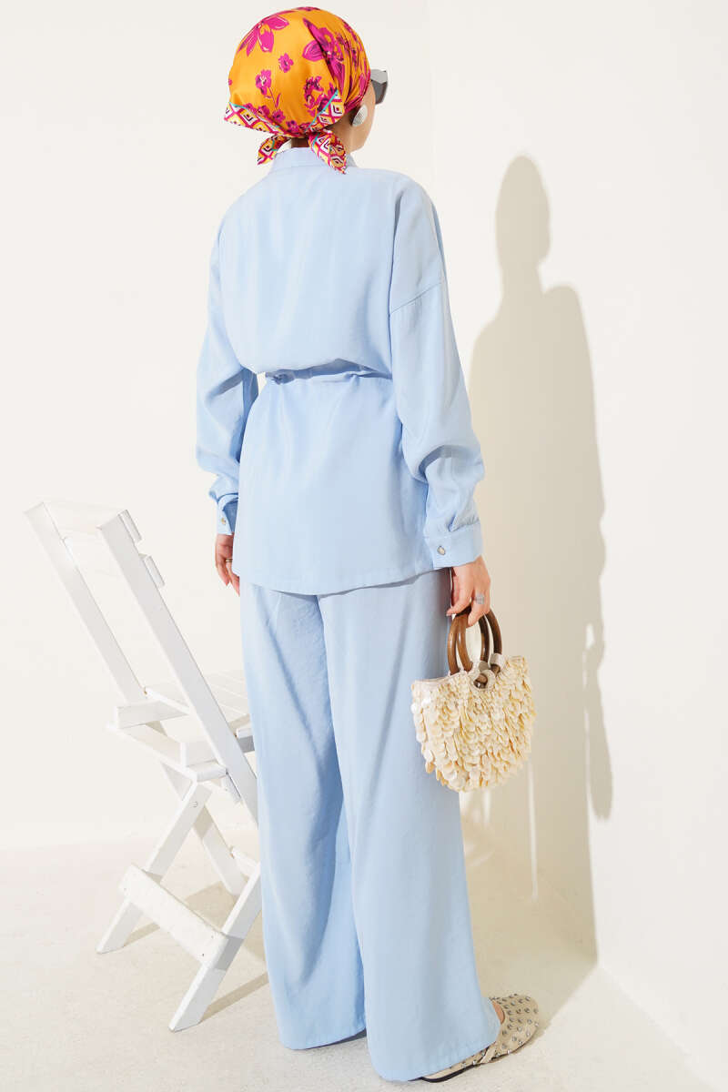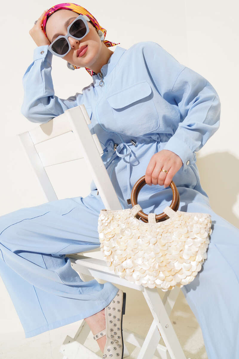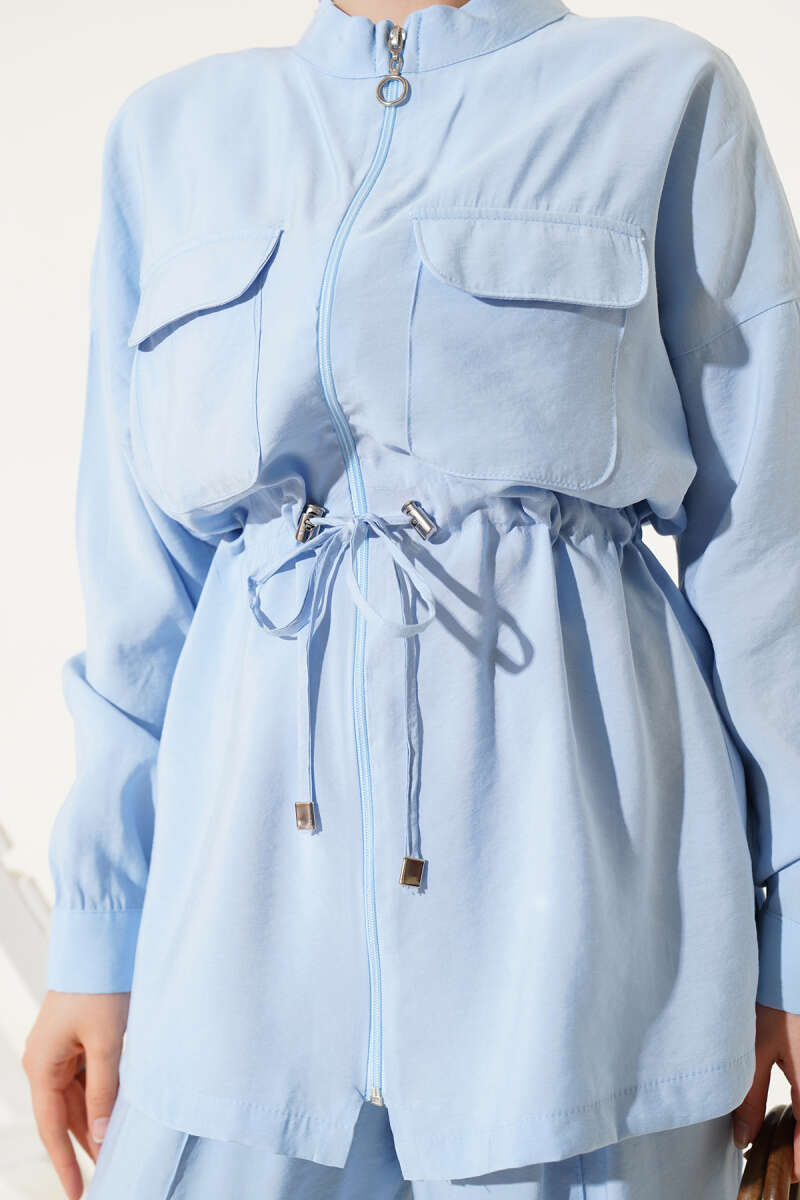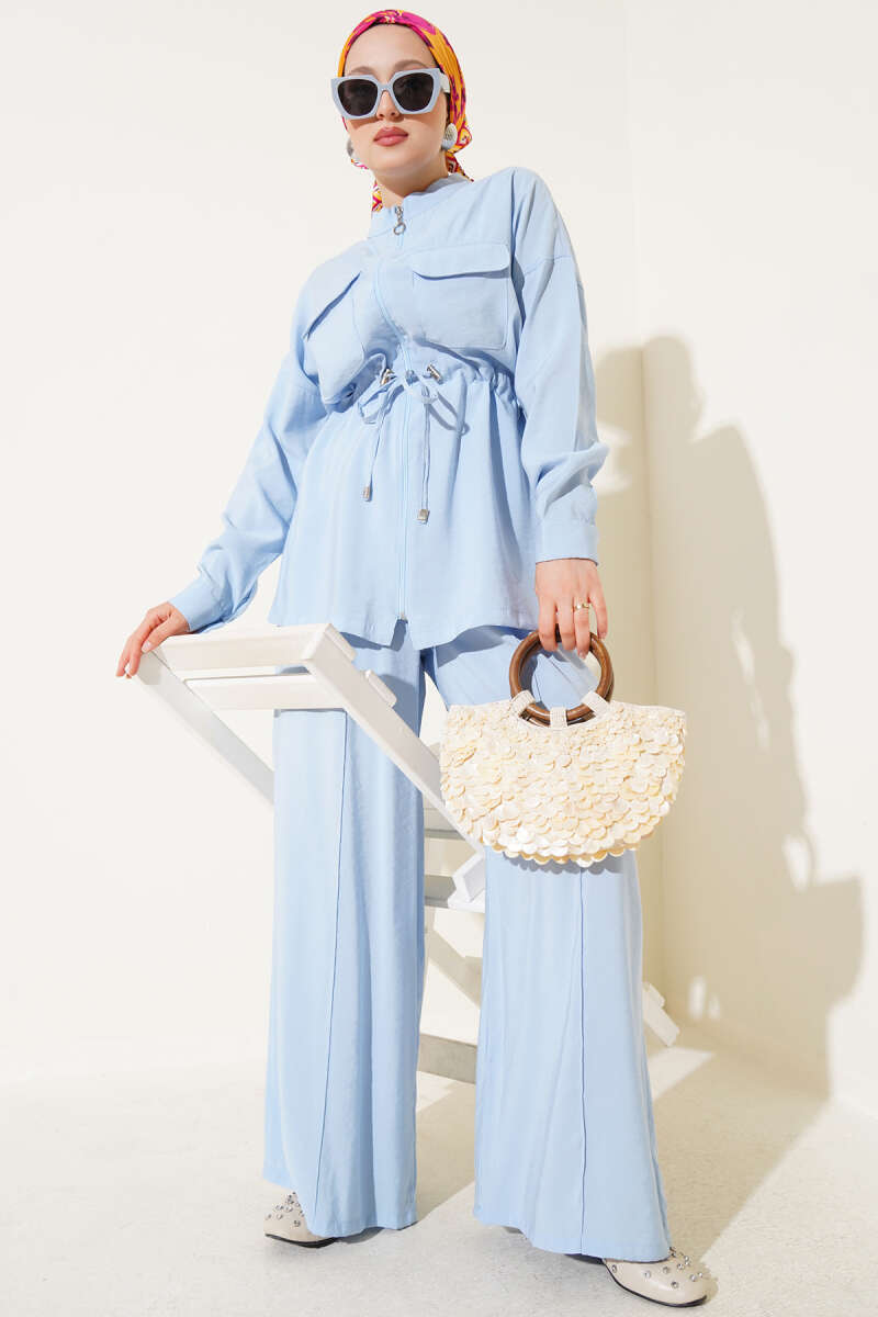 Fermuarlı Beli Tünelli İkili Takım Bebe Mavi