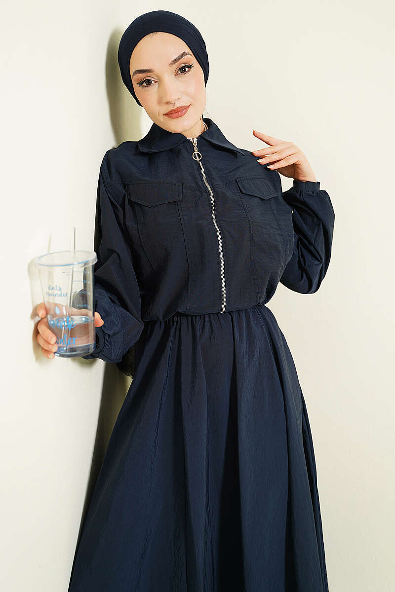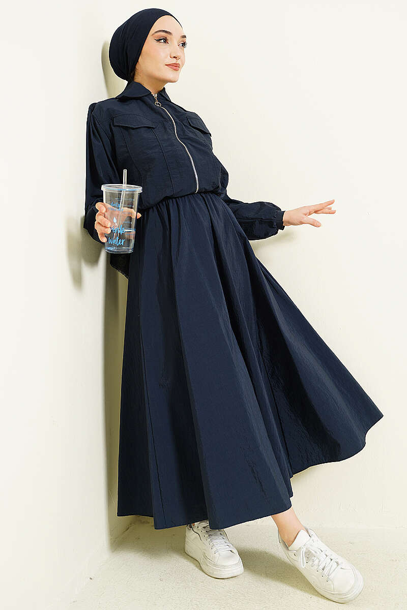 Fermuarlı Ceketli Etekli Paraşüt İkili Takım Lacivert