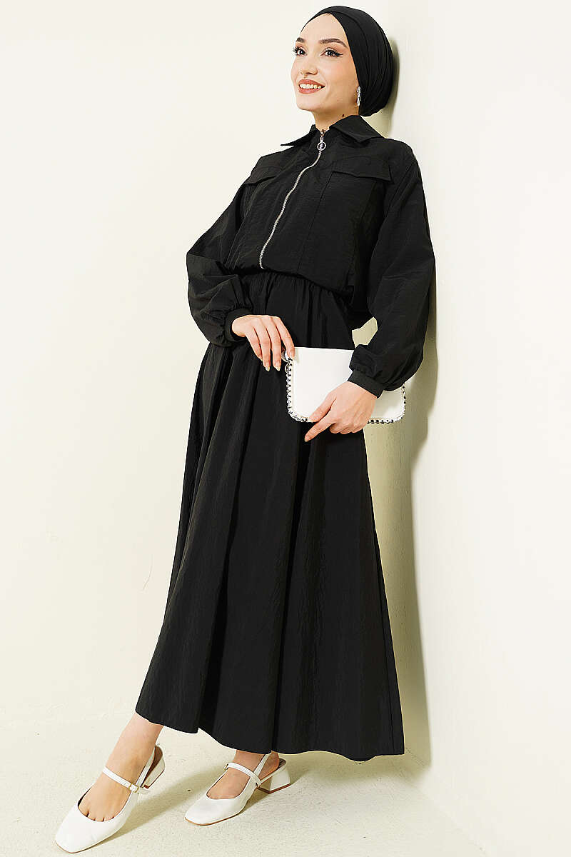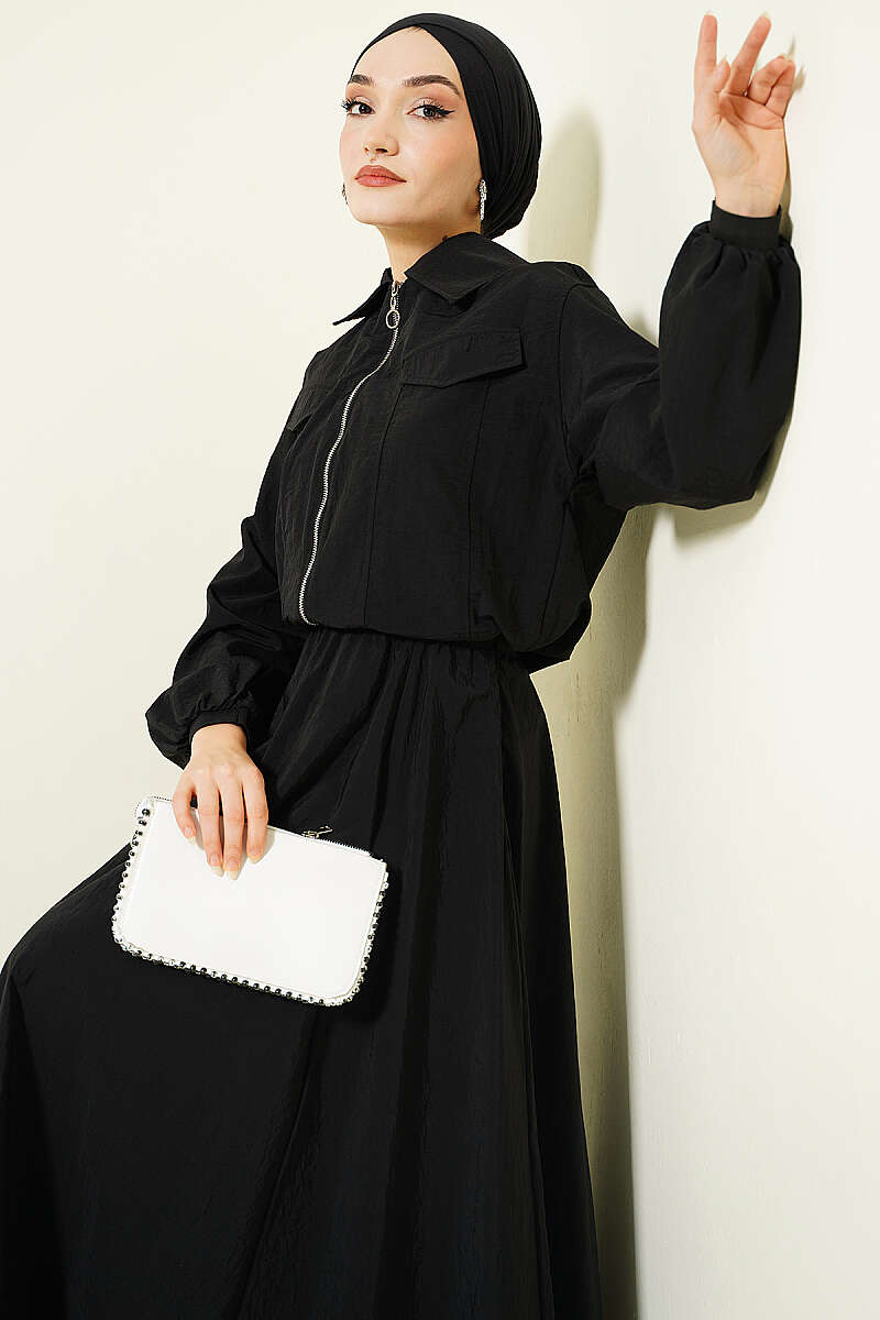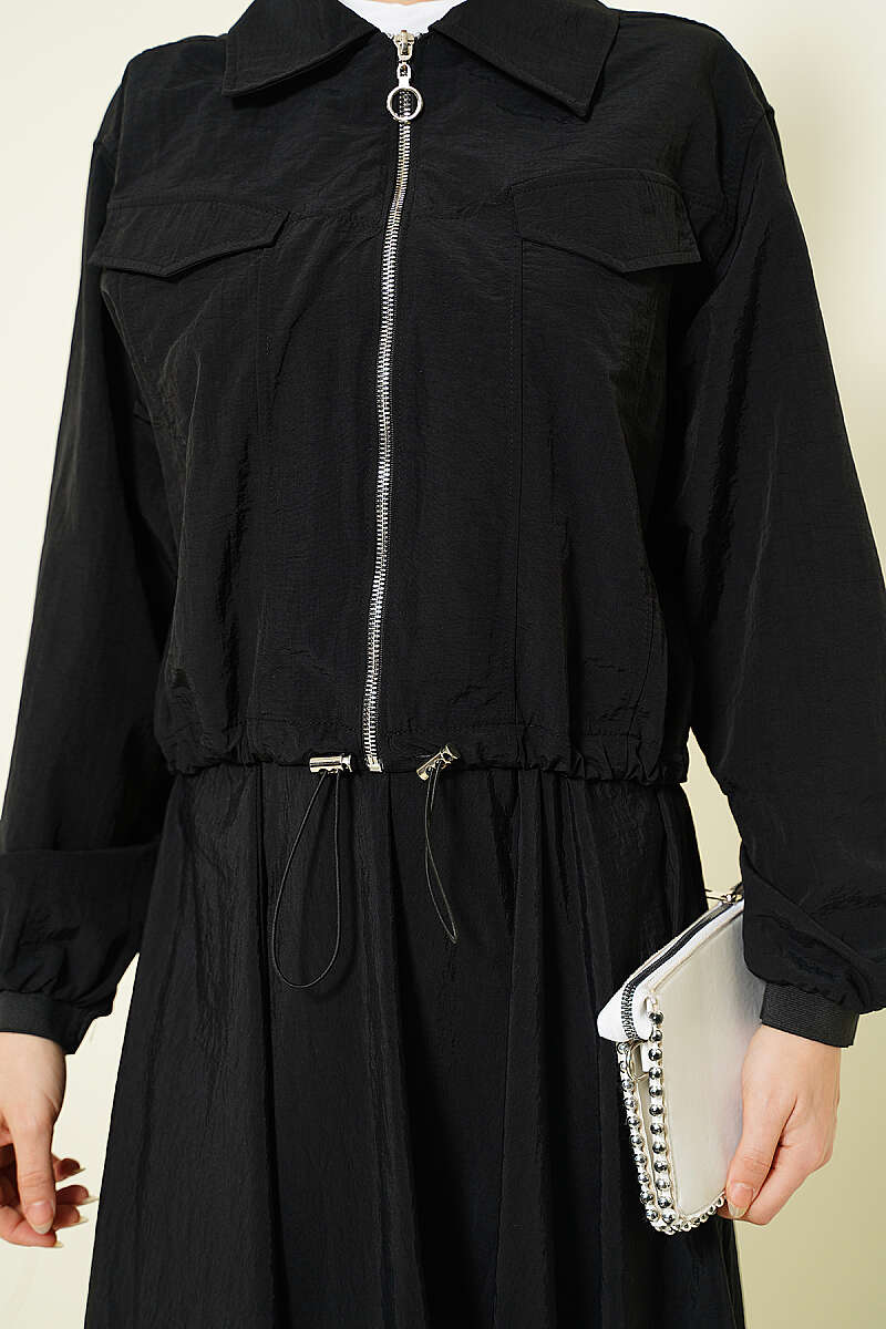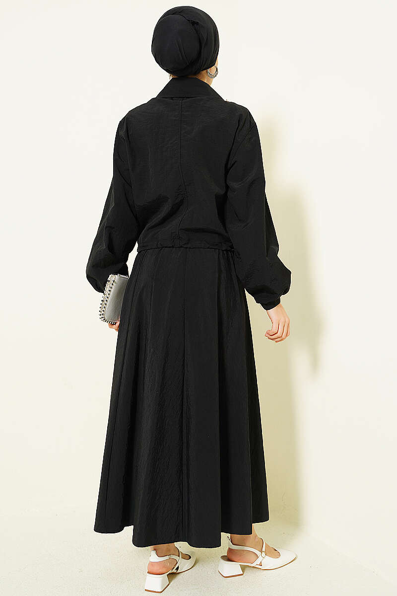 Fermuarlı Ceketli Etekli Paraşüt İkili Takım Siyah