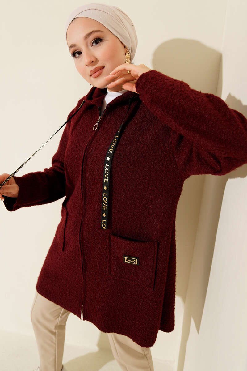 Balon Kol Kuşaklı Kısa Kaban Bordo