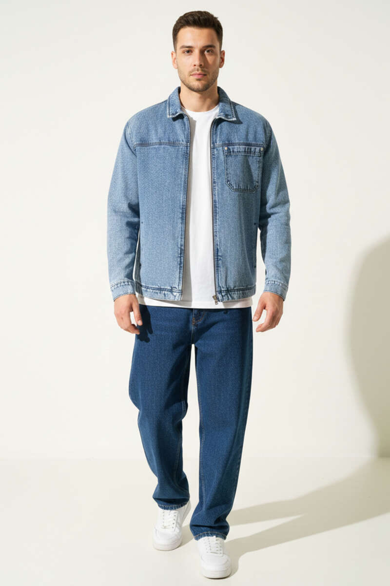 Fermuarlı Cepli Erkek Kot Ceket Mavi