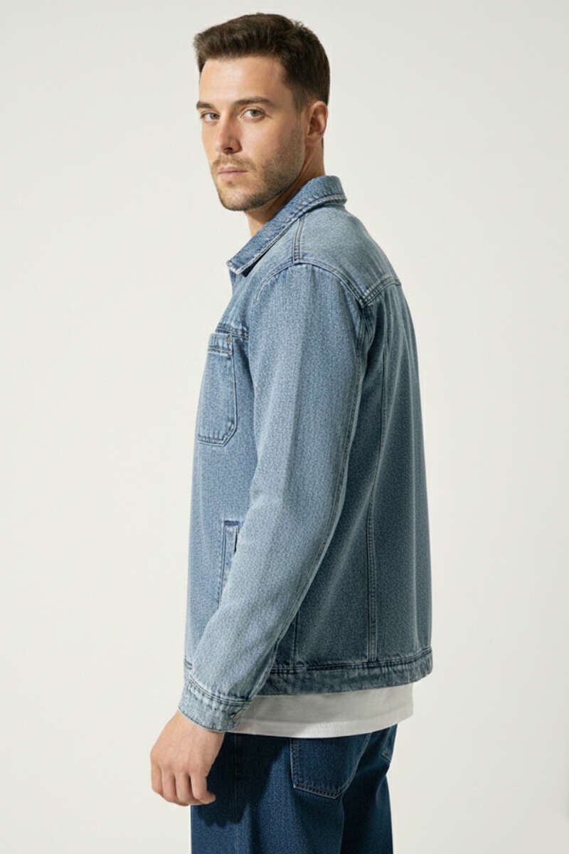 Düğmeli Oversize Denim Erkek Ceket Mavi Kar