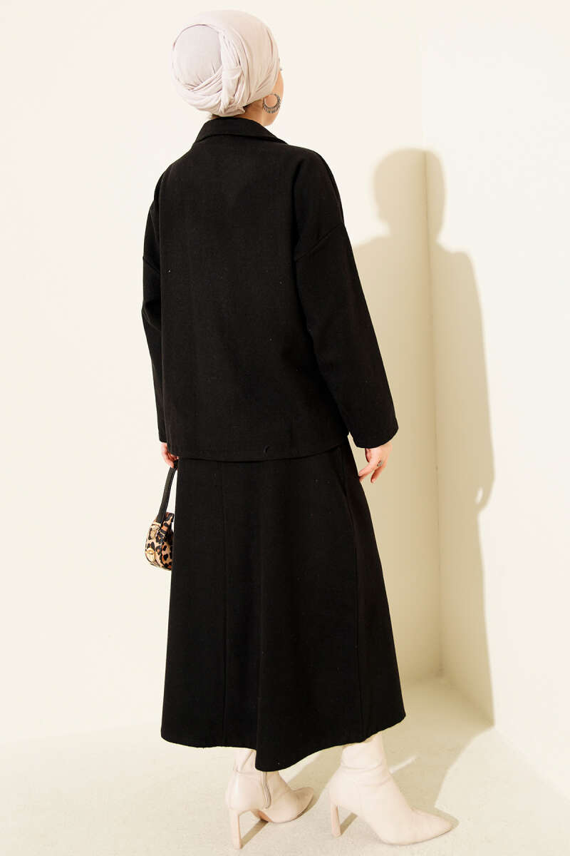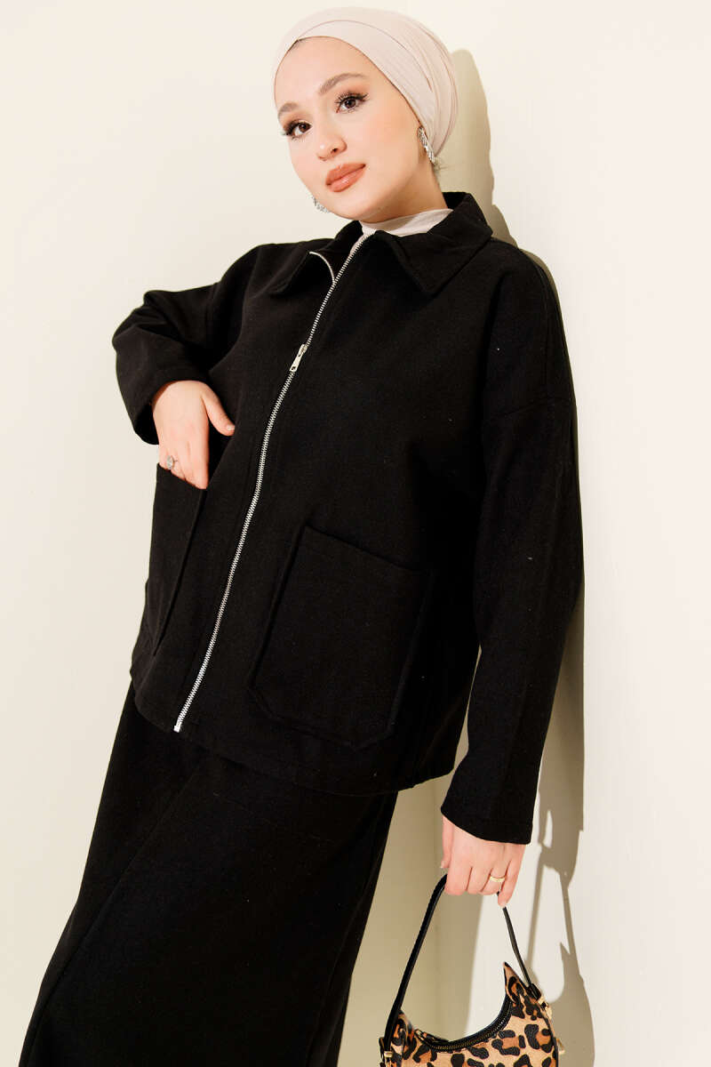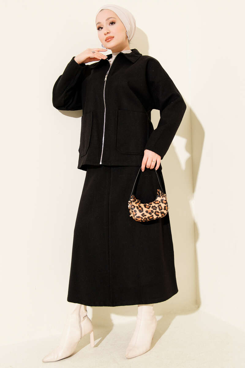Kemer Tokalı Fermuarlı Loyşa İkili Takım Siyah