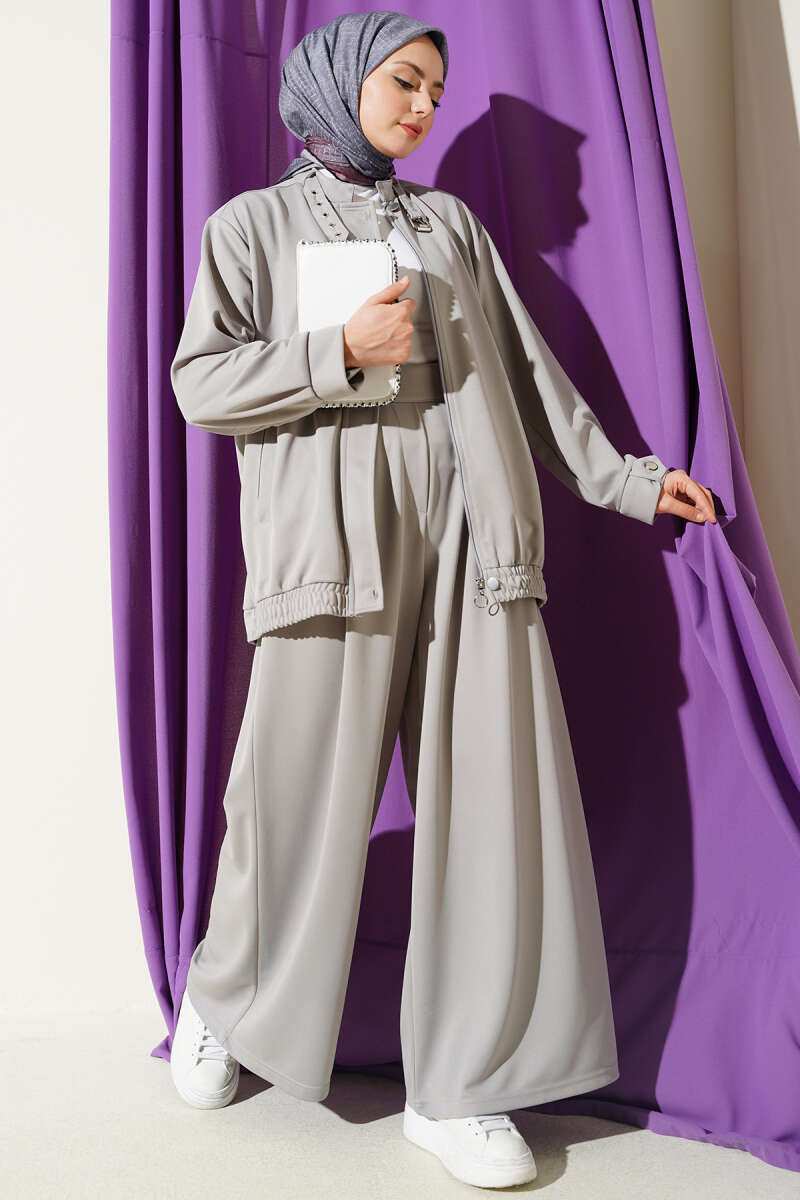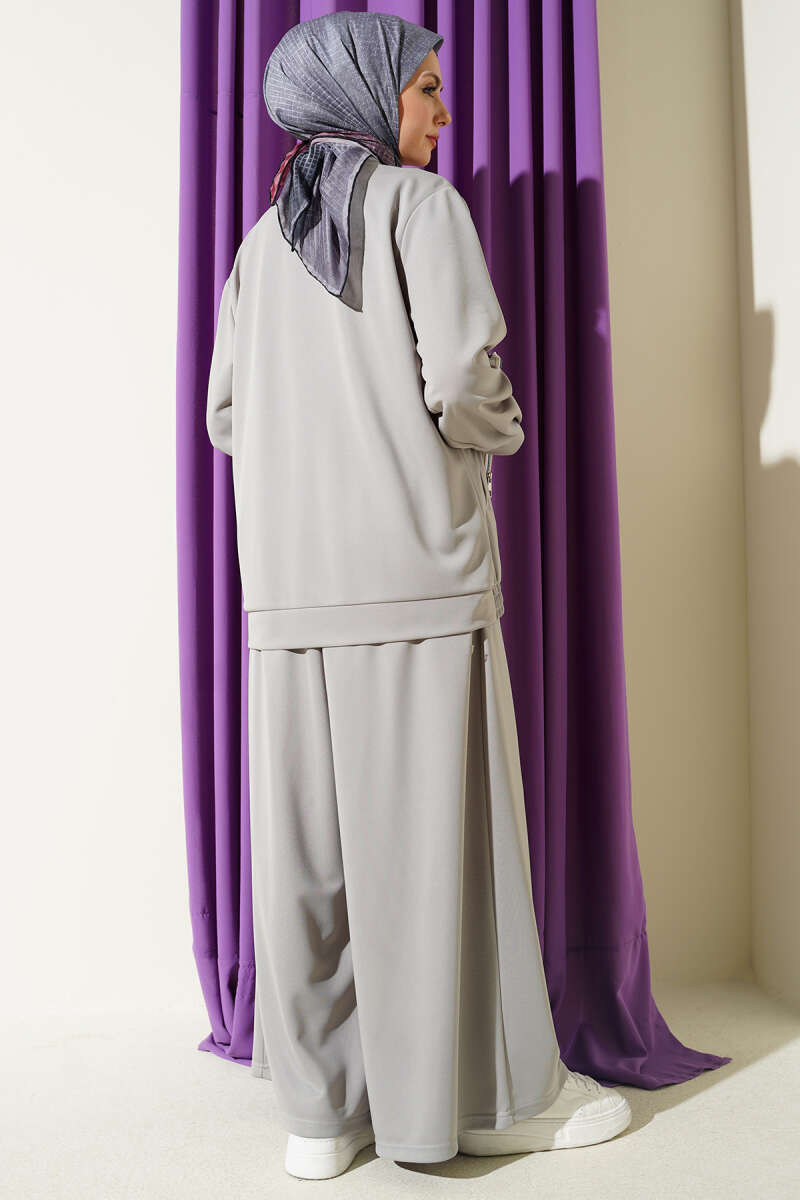 Fermuarlı Cepli Salaş İkili Takım Gri
