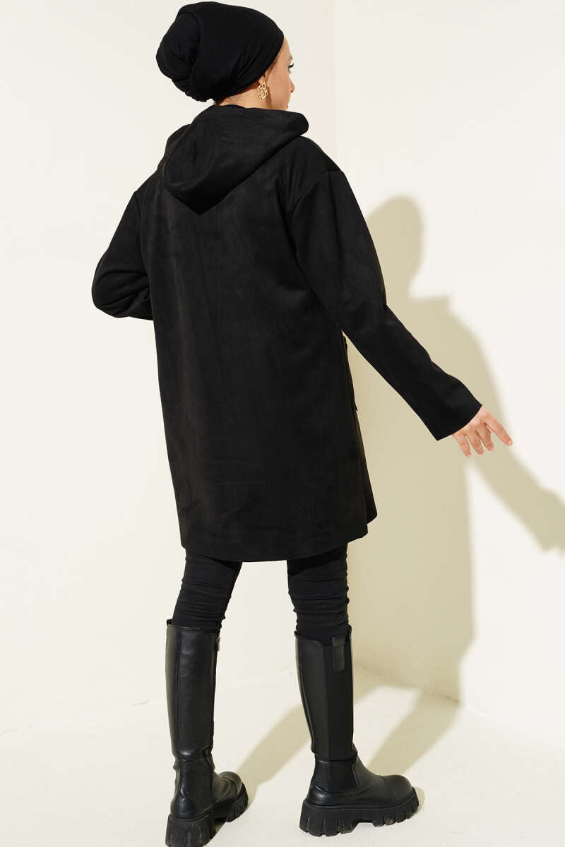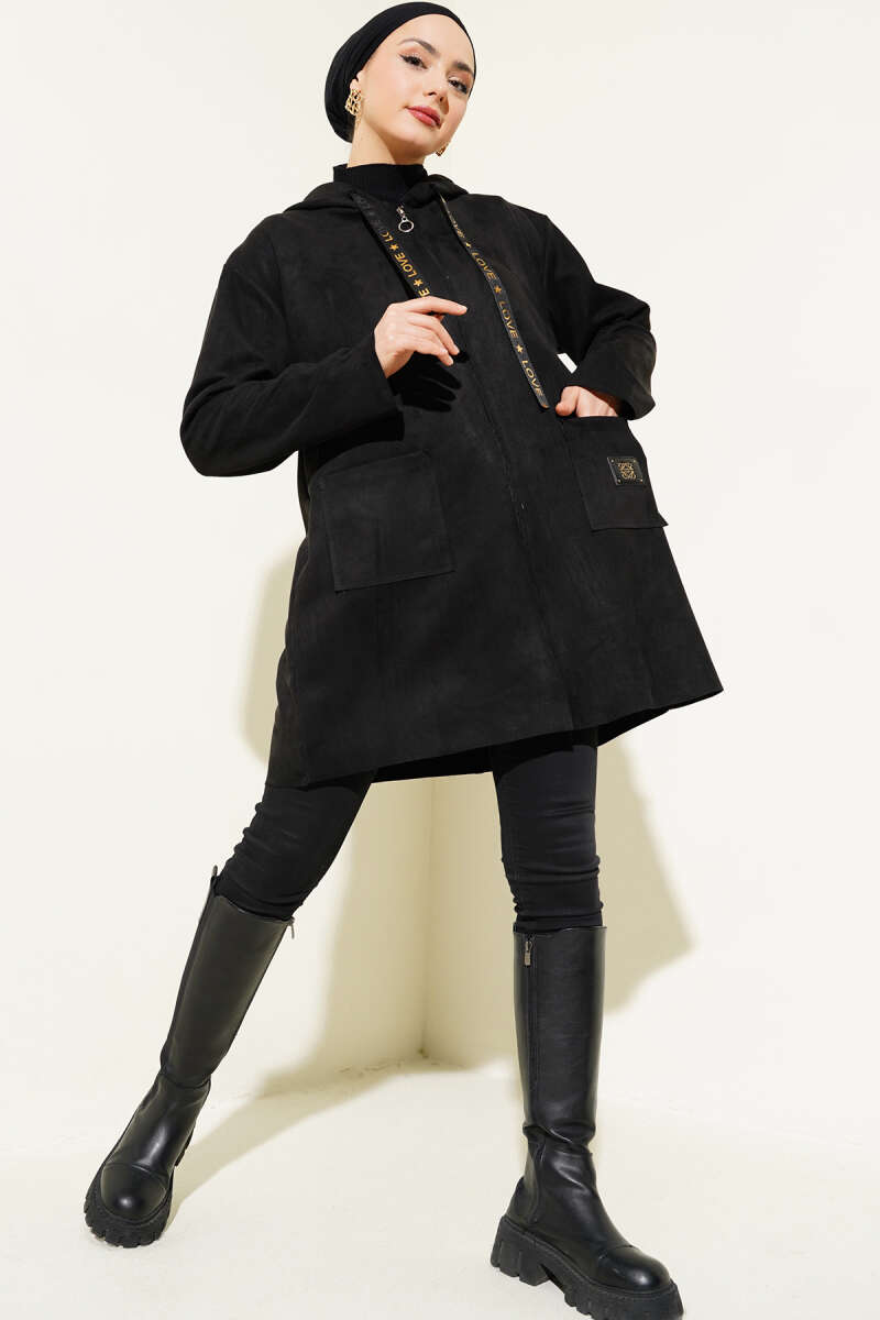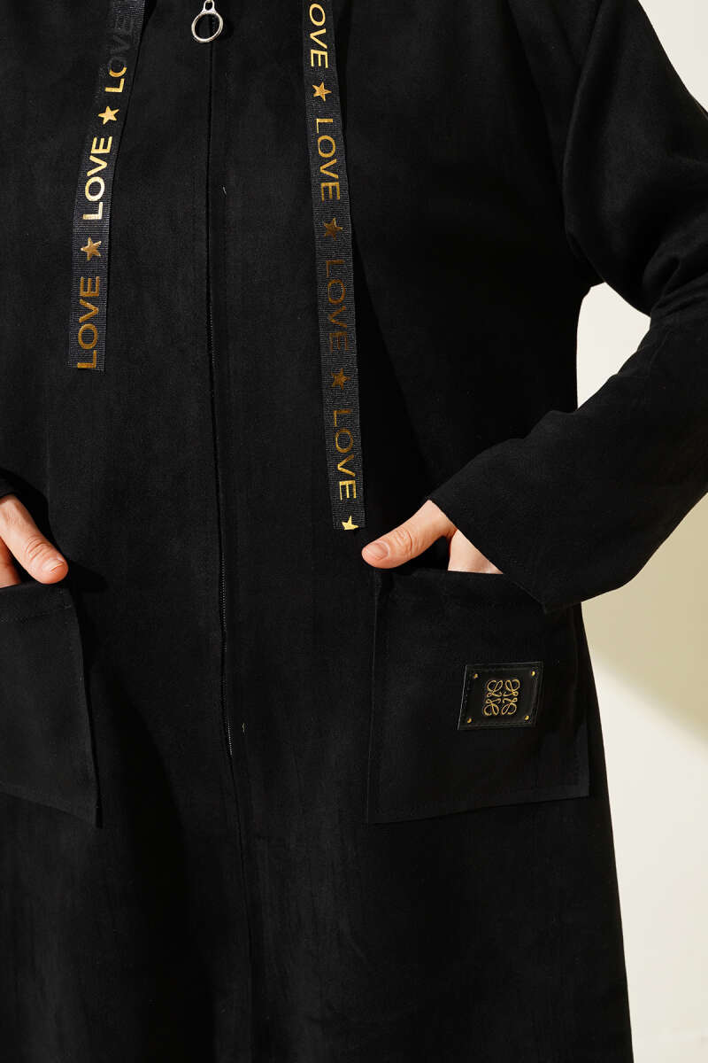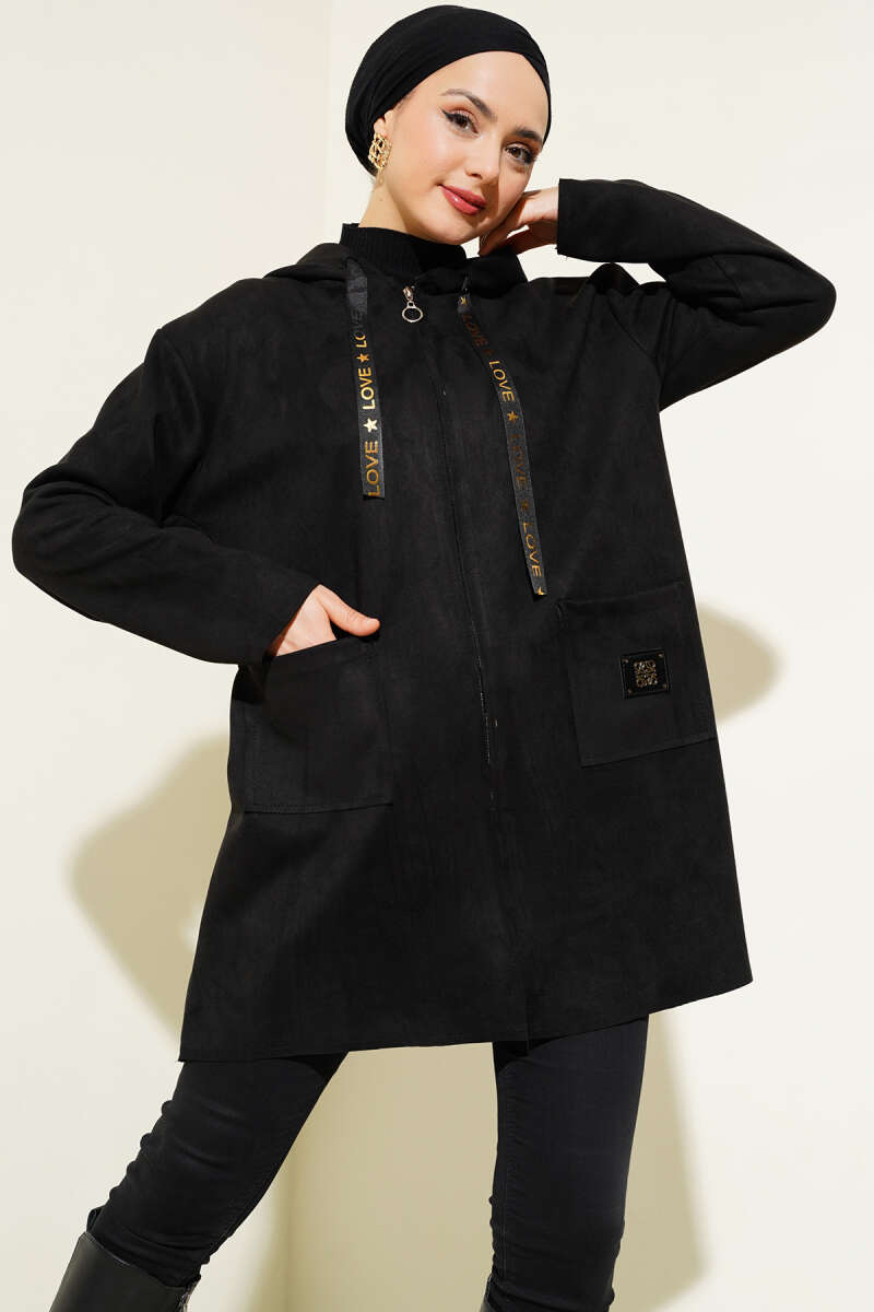 Lastikli Bel Tünelli Fermuarlı Ceket Siyah