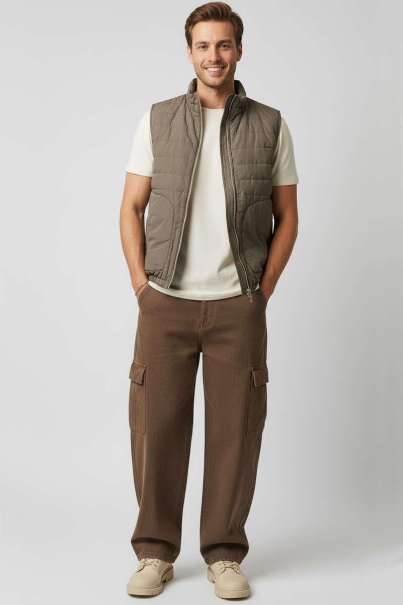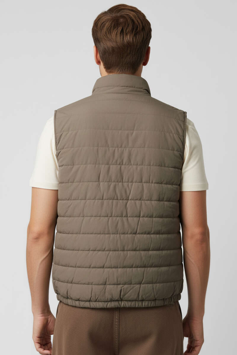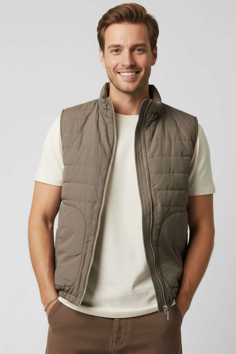 Fermuarlı Basic Erkek Yelek Bej