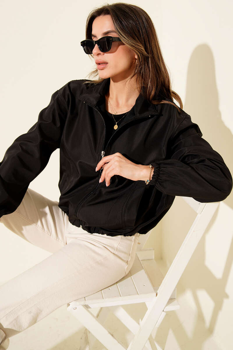 Fermuarlı Çift Cepli Kısa Ceket Taş