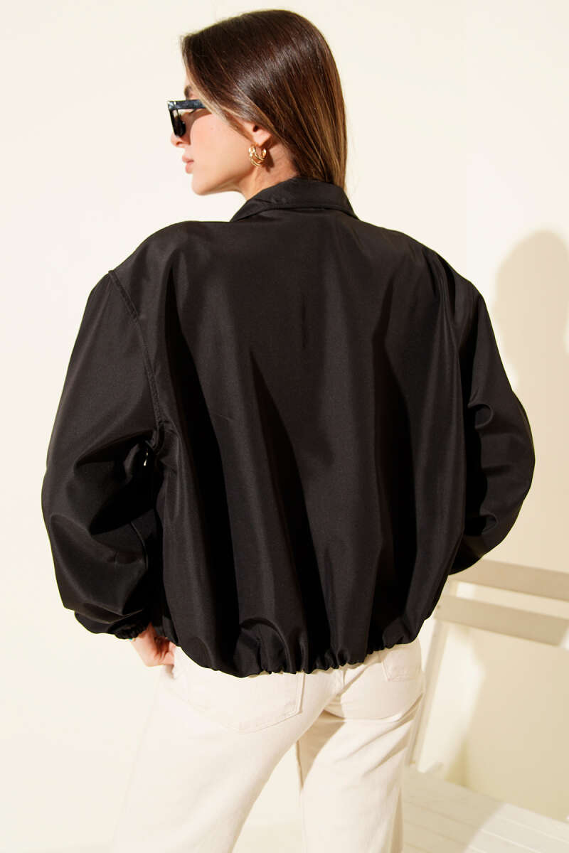 Gömlek Yaka Fermuarlı Kısa Deri Ceket Siyah