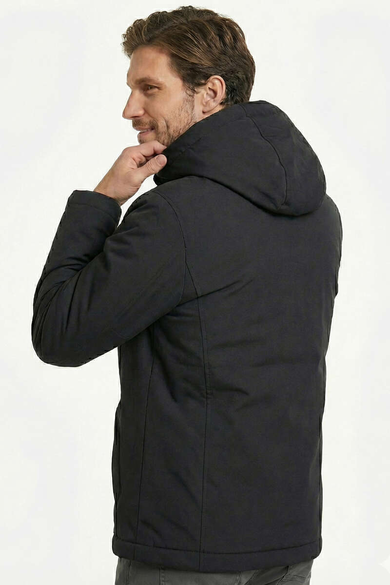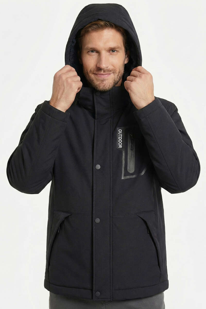 Torba Cepli Kapüşonlu Erkek Mont Siyah