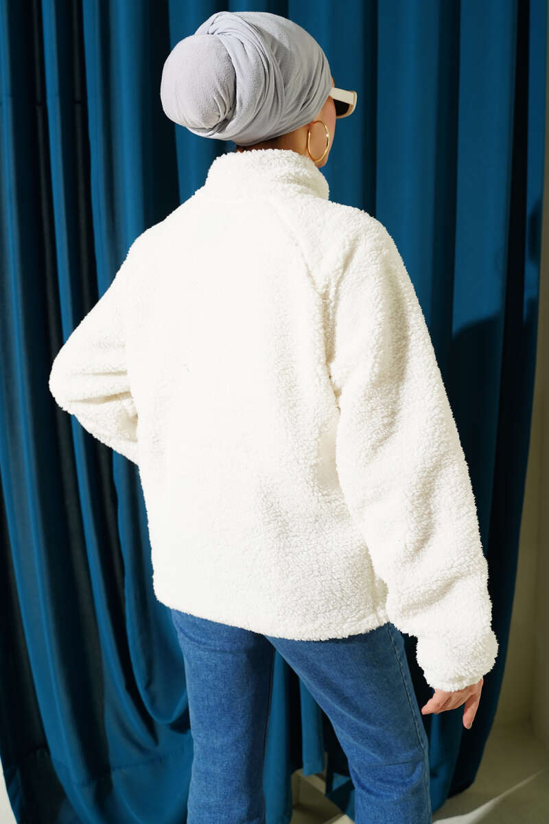 Kuşaklı Kruvaze Yaka Kürk Mont Beyaz