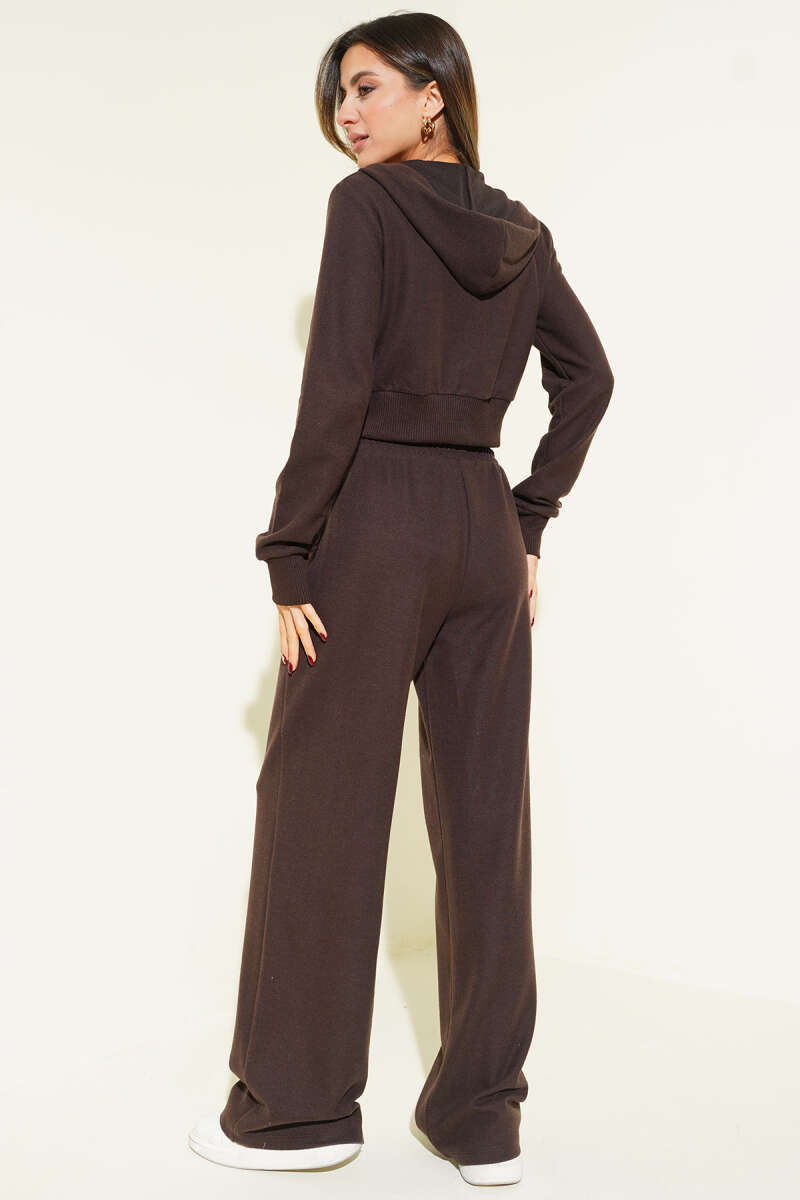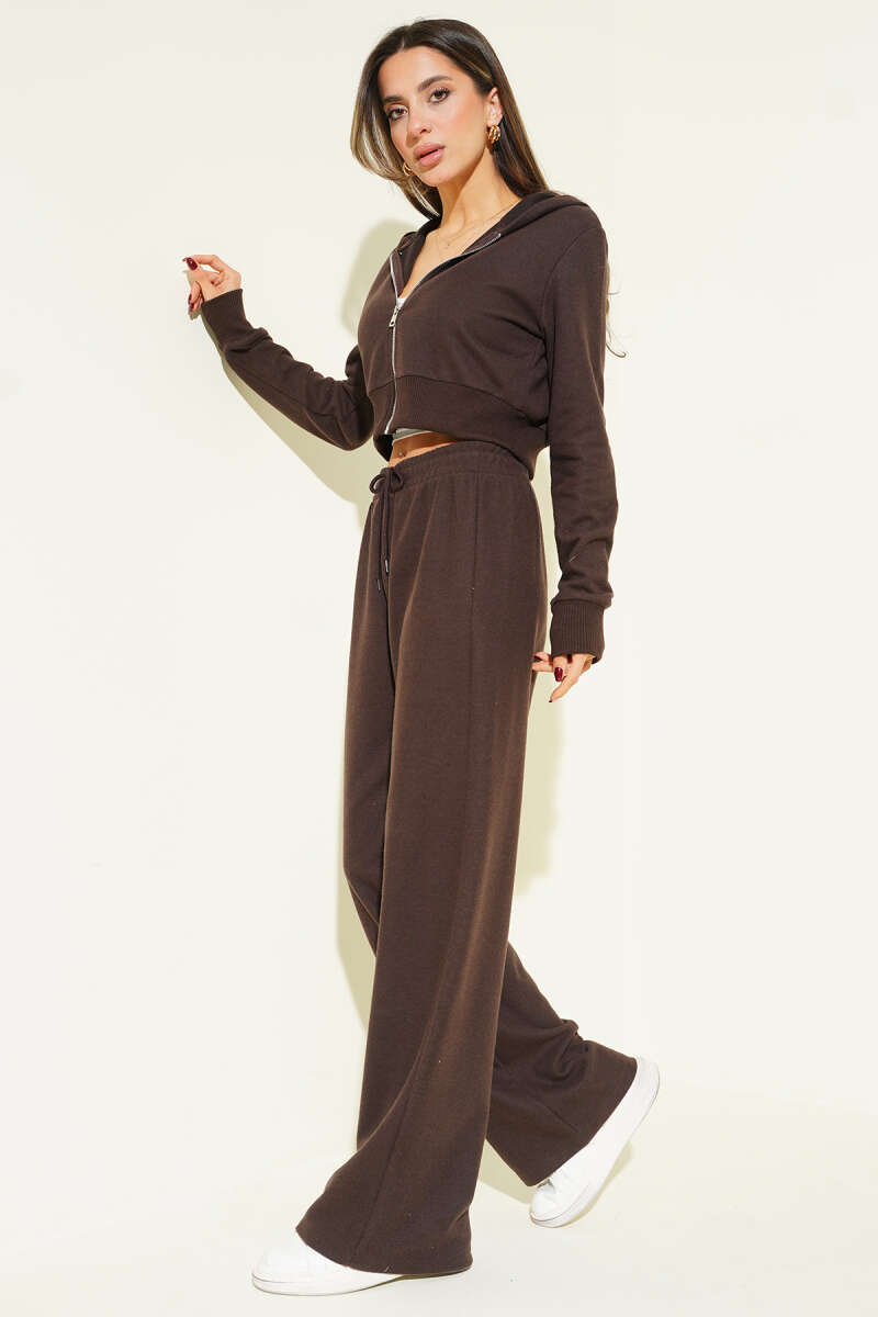 Fermuarlı Crop Hırka İkili Takım Füme