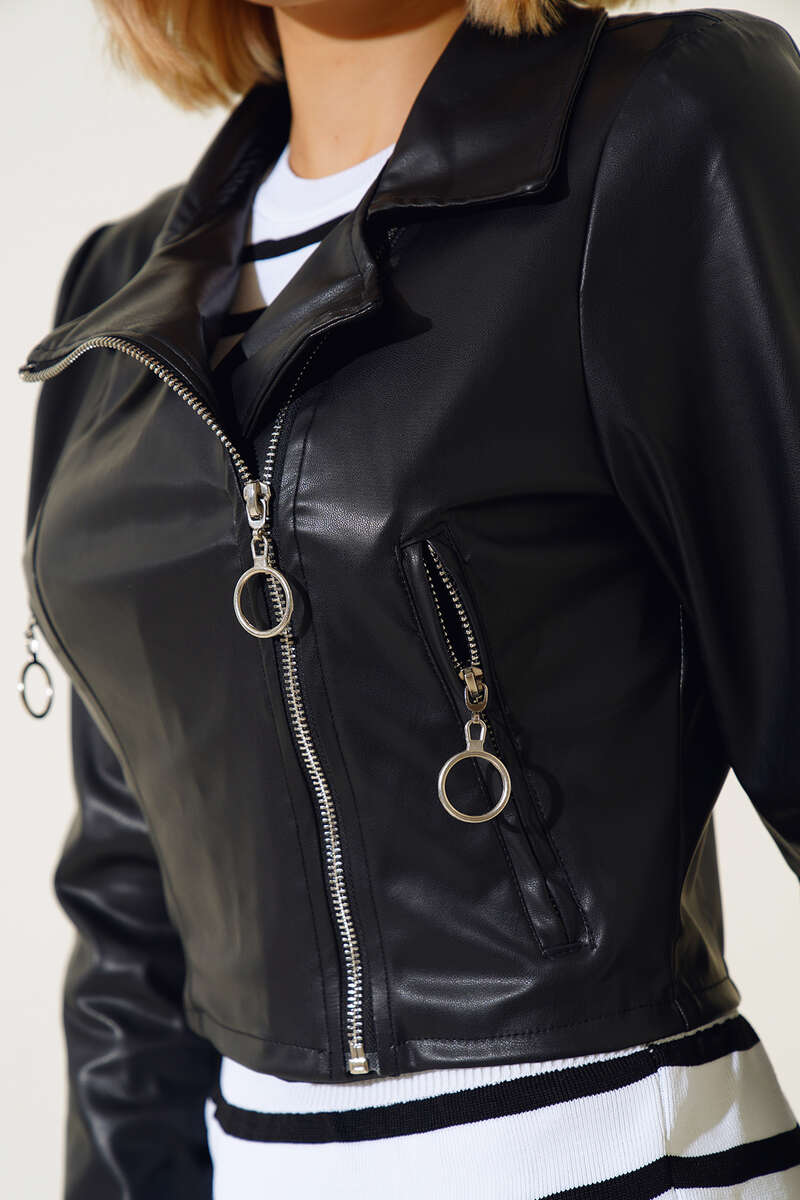 Ürün BilgisiModelin üzerindeki ürün - S - bedendir.Boy: 43 cmGöğüs: 90 cmBel: 70 cmYeni sezon deri ceketimiz boydan çapraz fermuarlıdır. İki adet cebi fermuarlıdır. Kullanılabilmektedir. İçi astarsız deri ceket sportif kombinlerde şık bir tamamlayıcı olacaktır.Kumaş Bilgisi%100 PolyesterModel BilgisiBoy: 170 cmGöğüs: 86 cmBel: 64 cmKalça: 93 cm